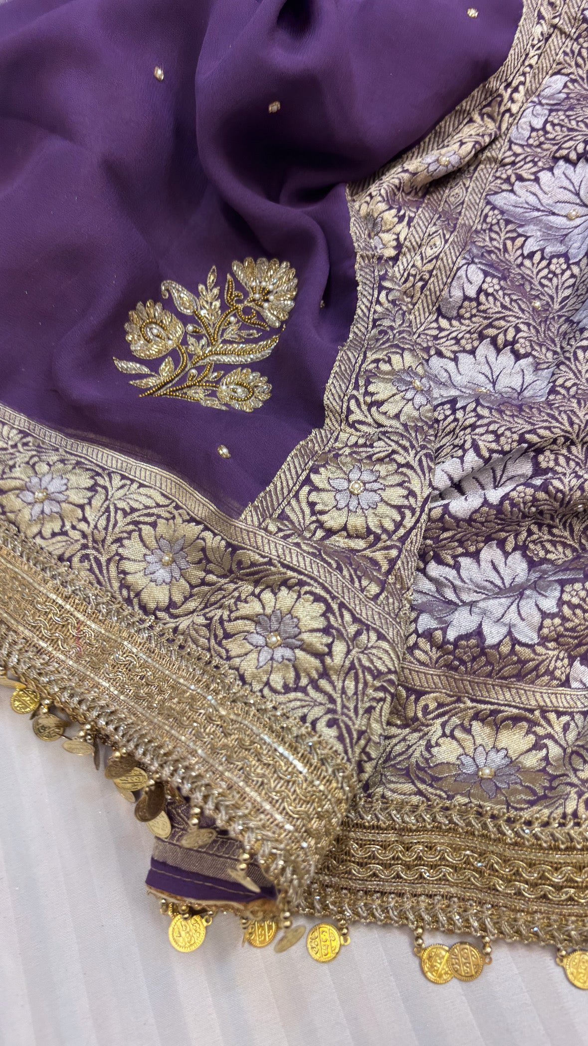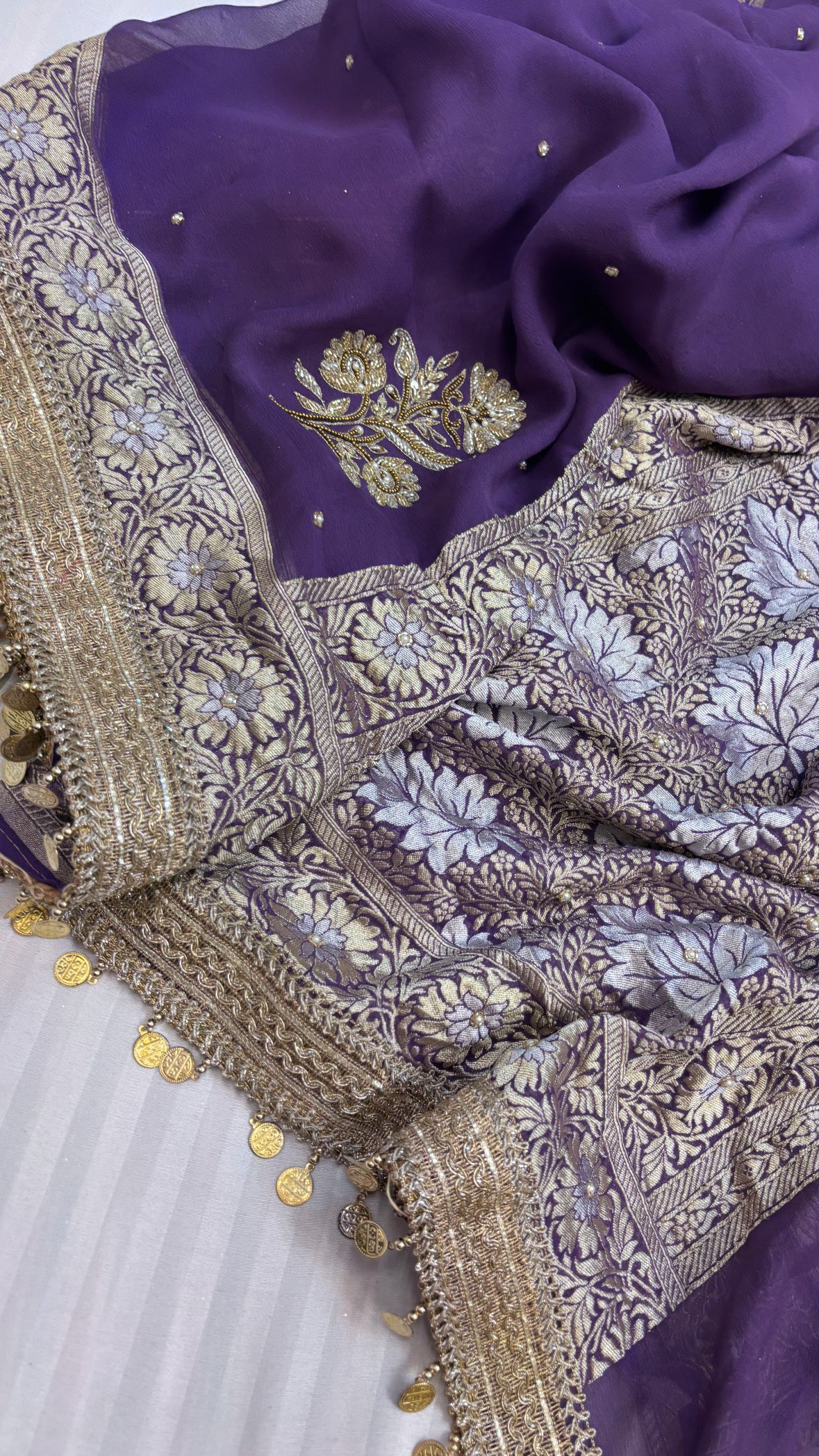 Elevate your wardrobe with this exquisite handwoven cloth, a true testament to Varanasi’s legendary craftsmanship. Meticulously created by master weavers, this piece blends opulent fabrics, intricate zari work, and traditional motifs for a regal drape.