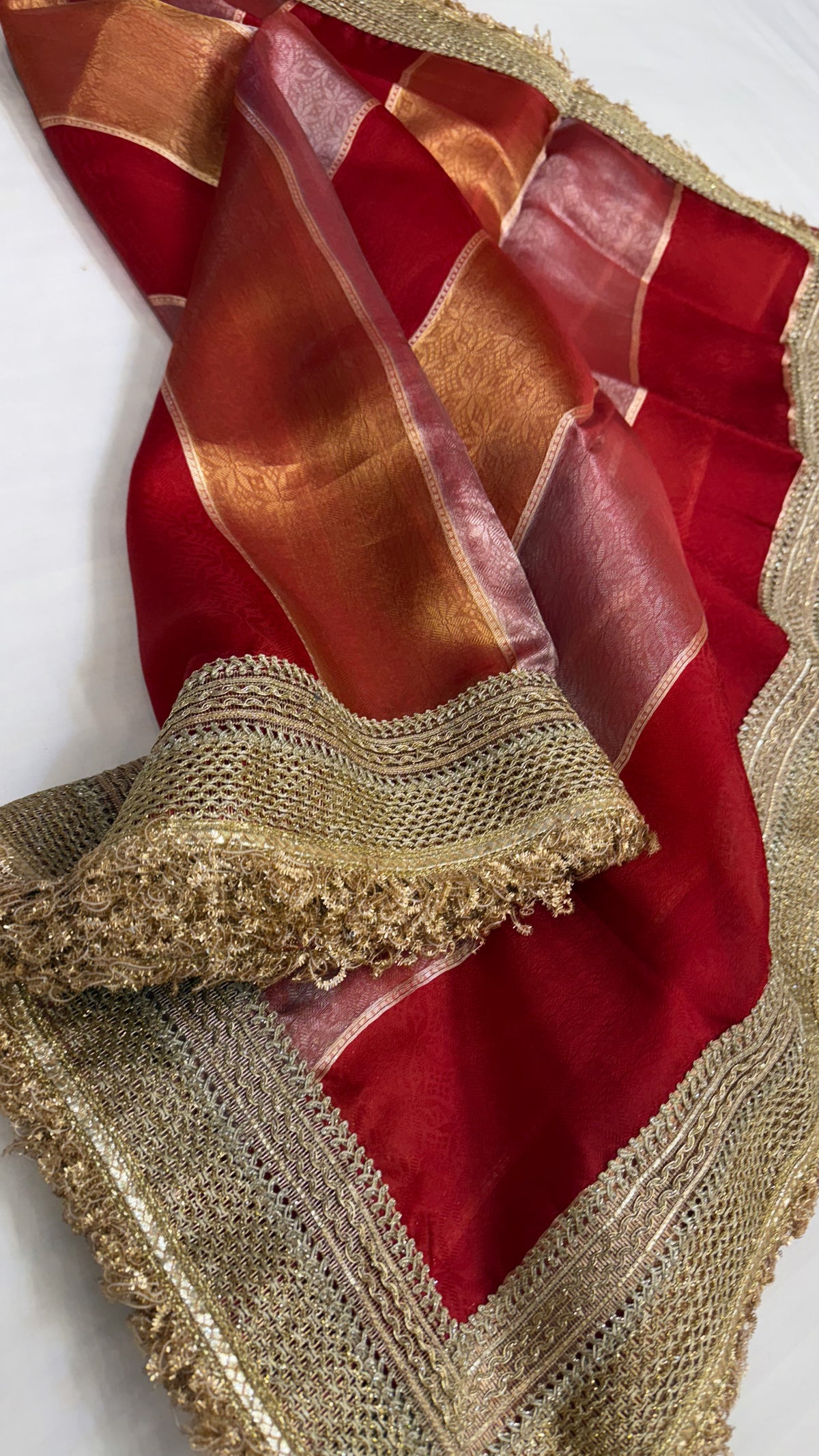 Maharani blood red tissue silk striped kadhwa saree