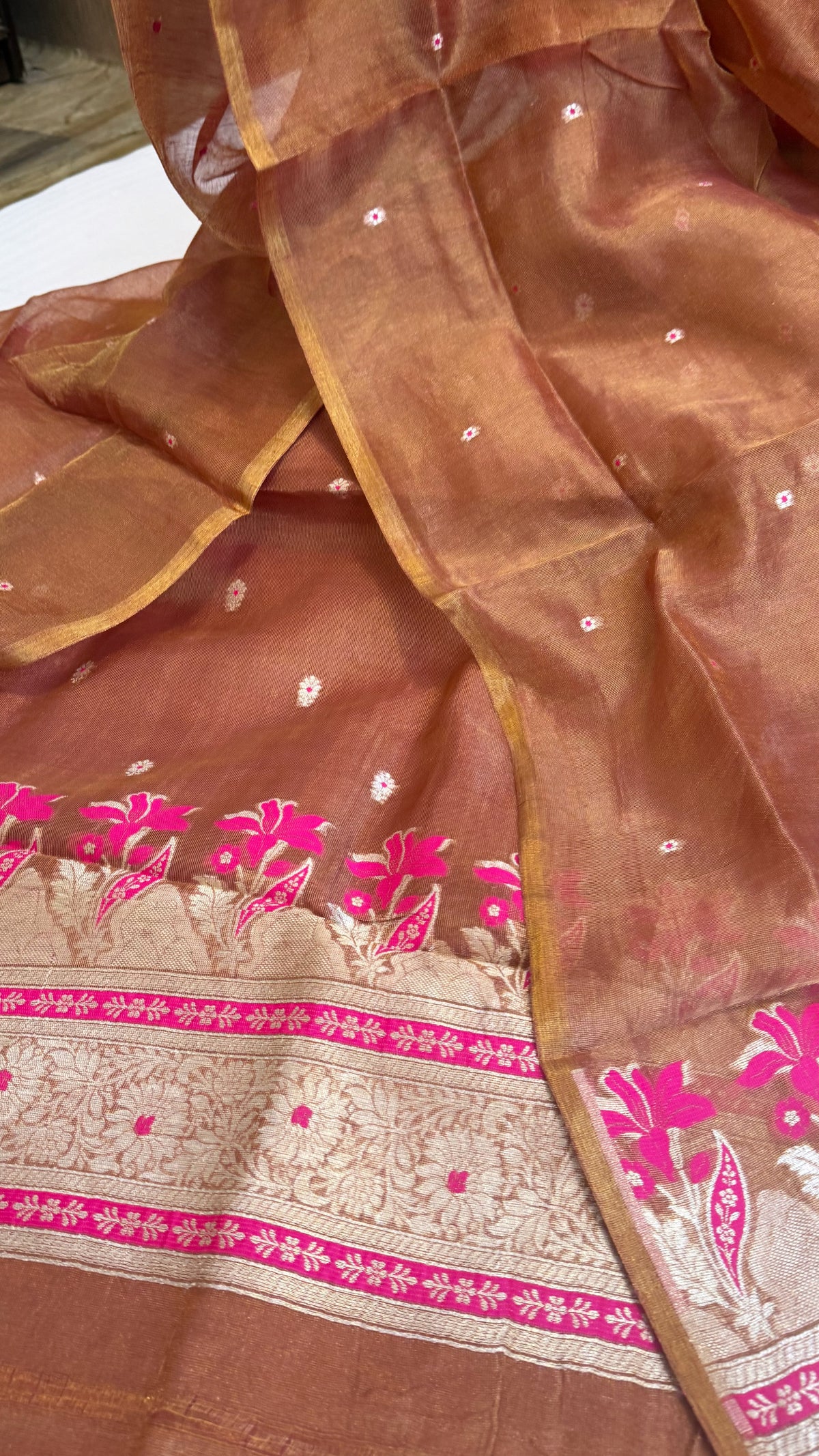 Elevate your wardrobe with this exquisite handwoven cloth, a true testament to Varanasi’s legendary craftsmanship. Meticulously created by master weavers, this piece blends opulent fabrics, intricate zari work, and traditional motifs for a regal drape.