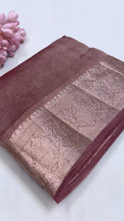 Pure banarasi garnet red crushed tissue silk handwoven kadhwa saree with intricate border and kadhwa blouse