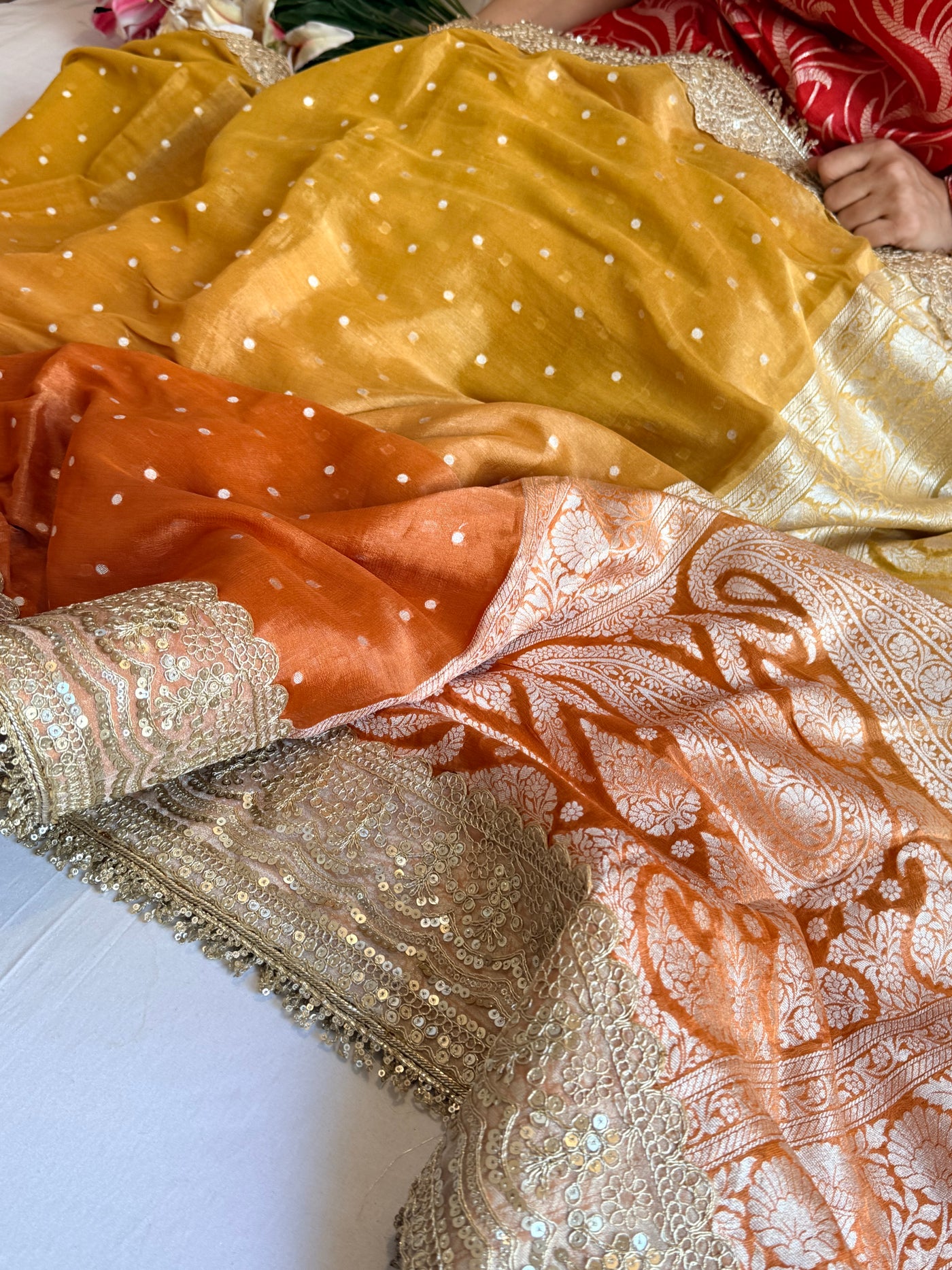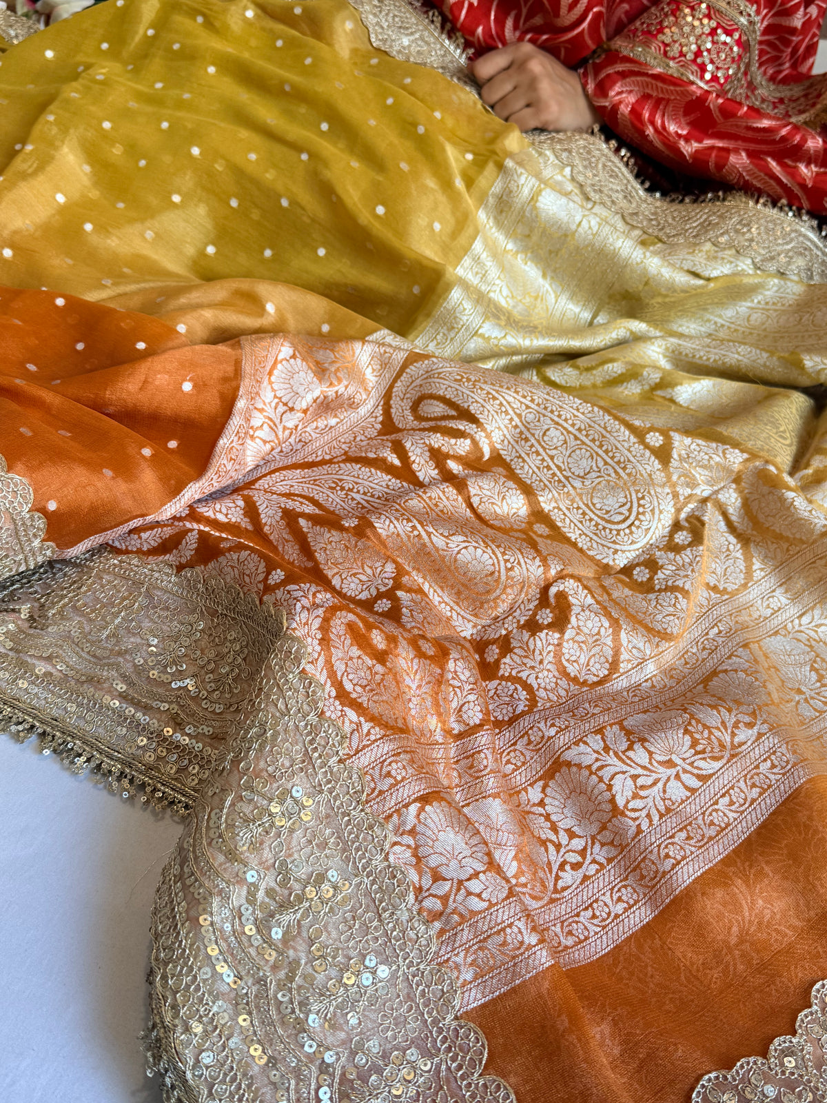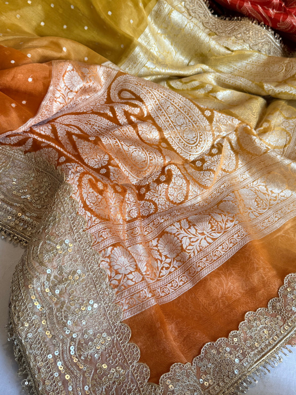 Chunri buti tissue gorgette kadhwa ombre shaded saree