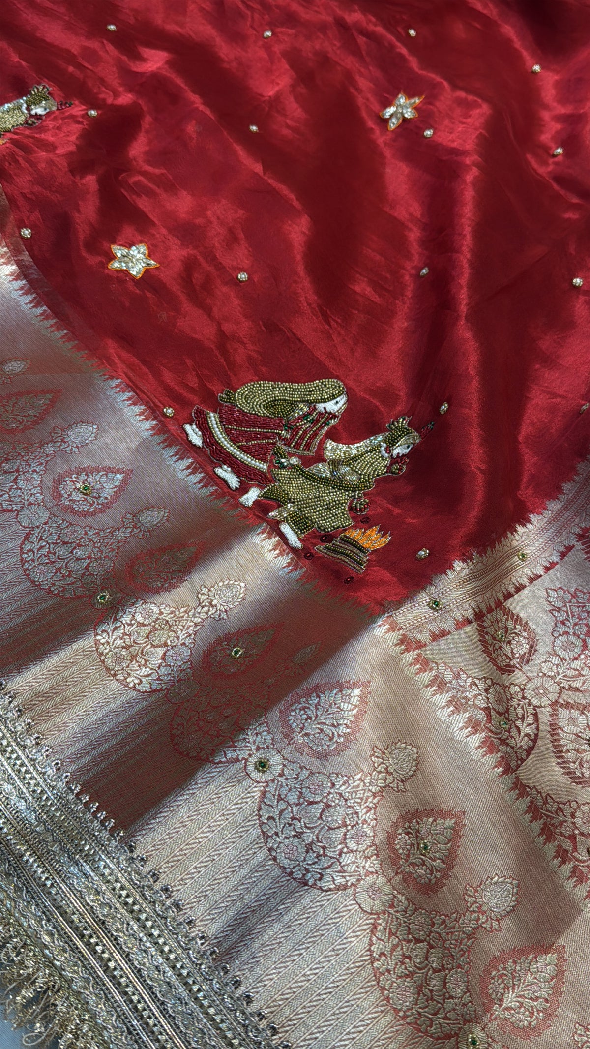 Dulhan ka joda husn red tissue silk hand embroidered saree