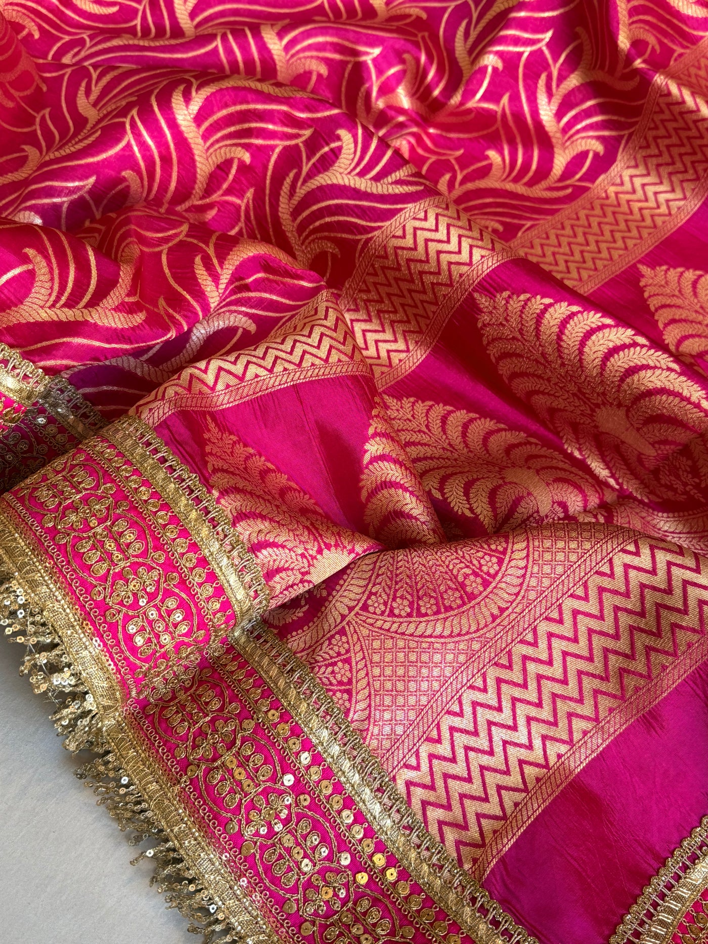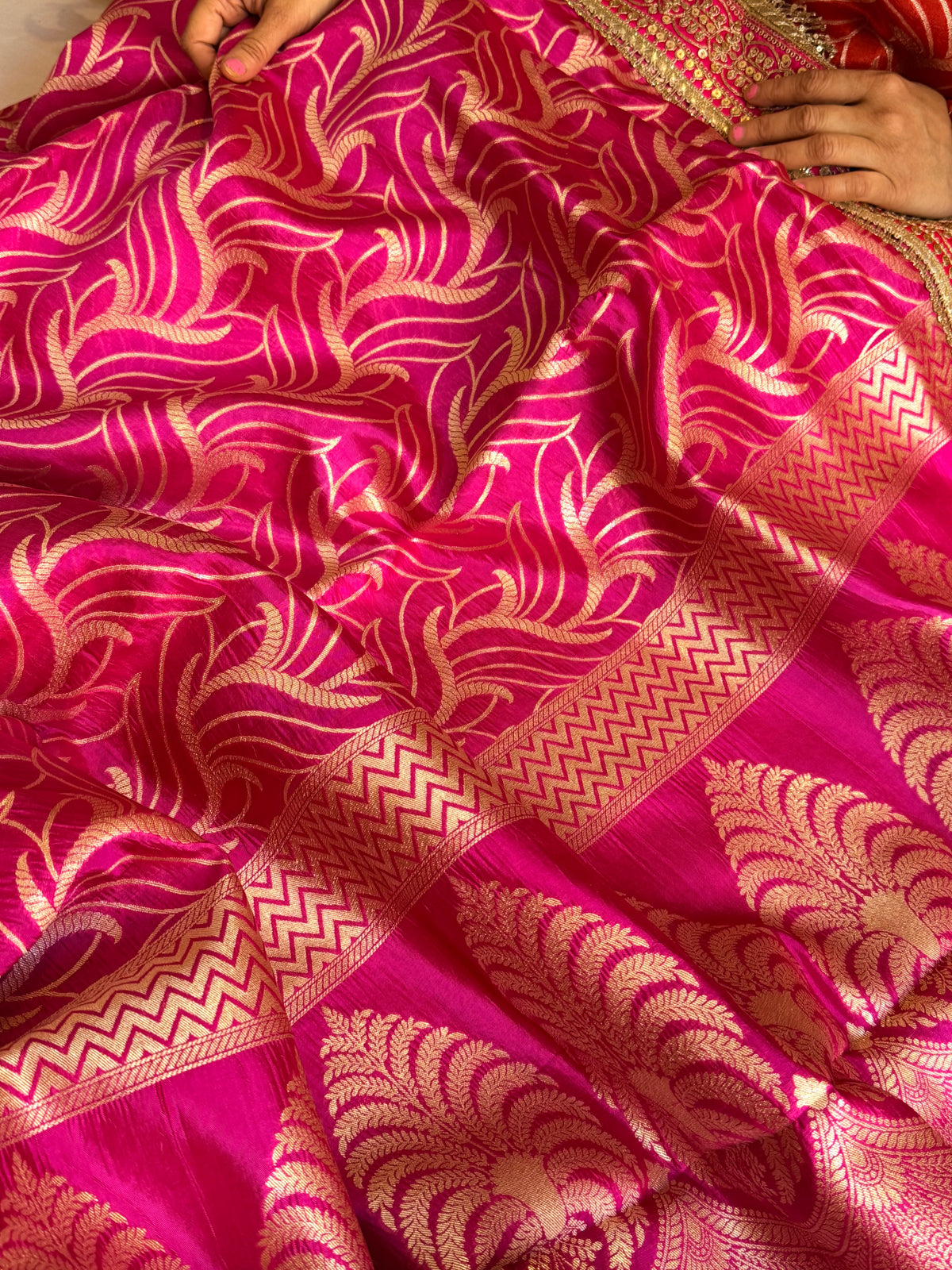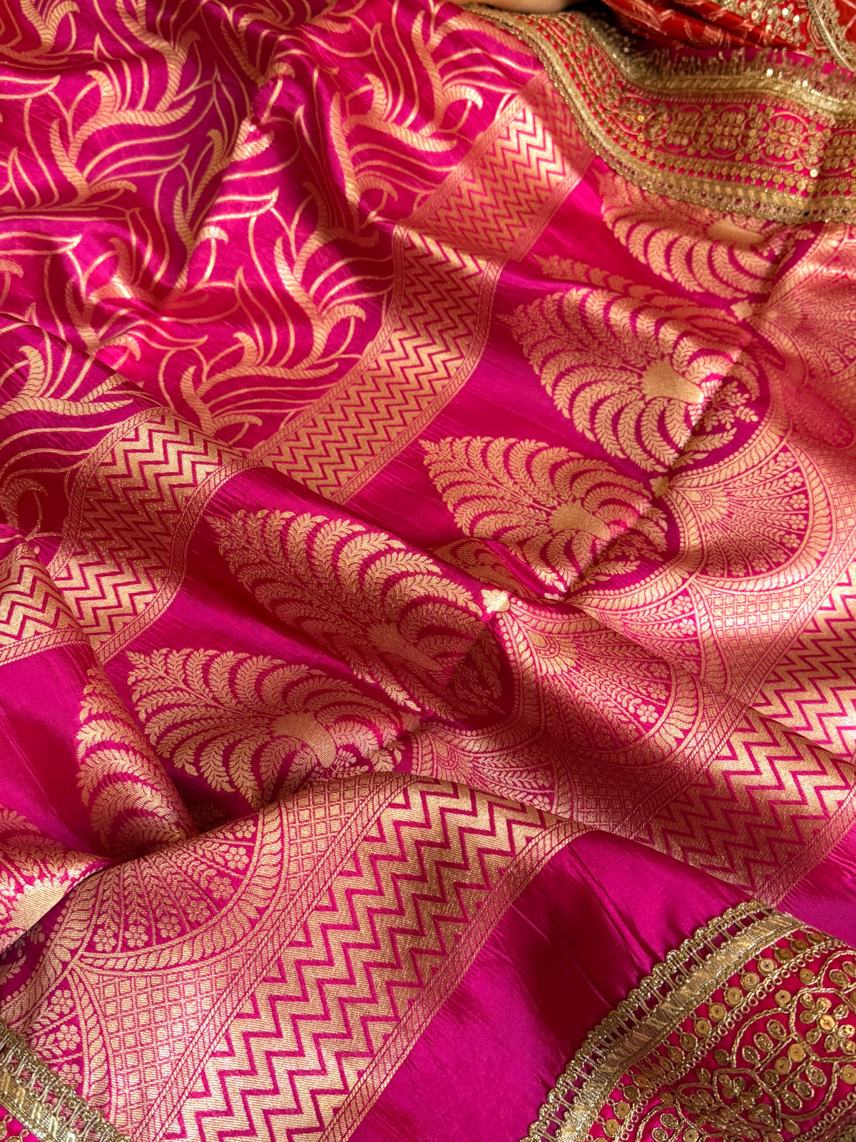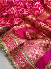 Hot pink raw mango silk abstract weaving kadhwa saree