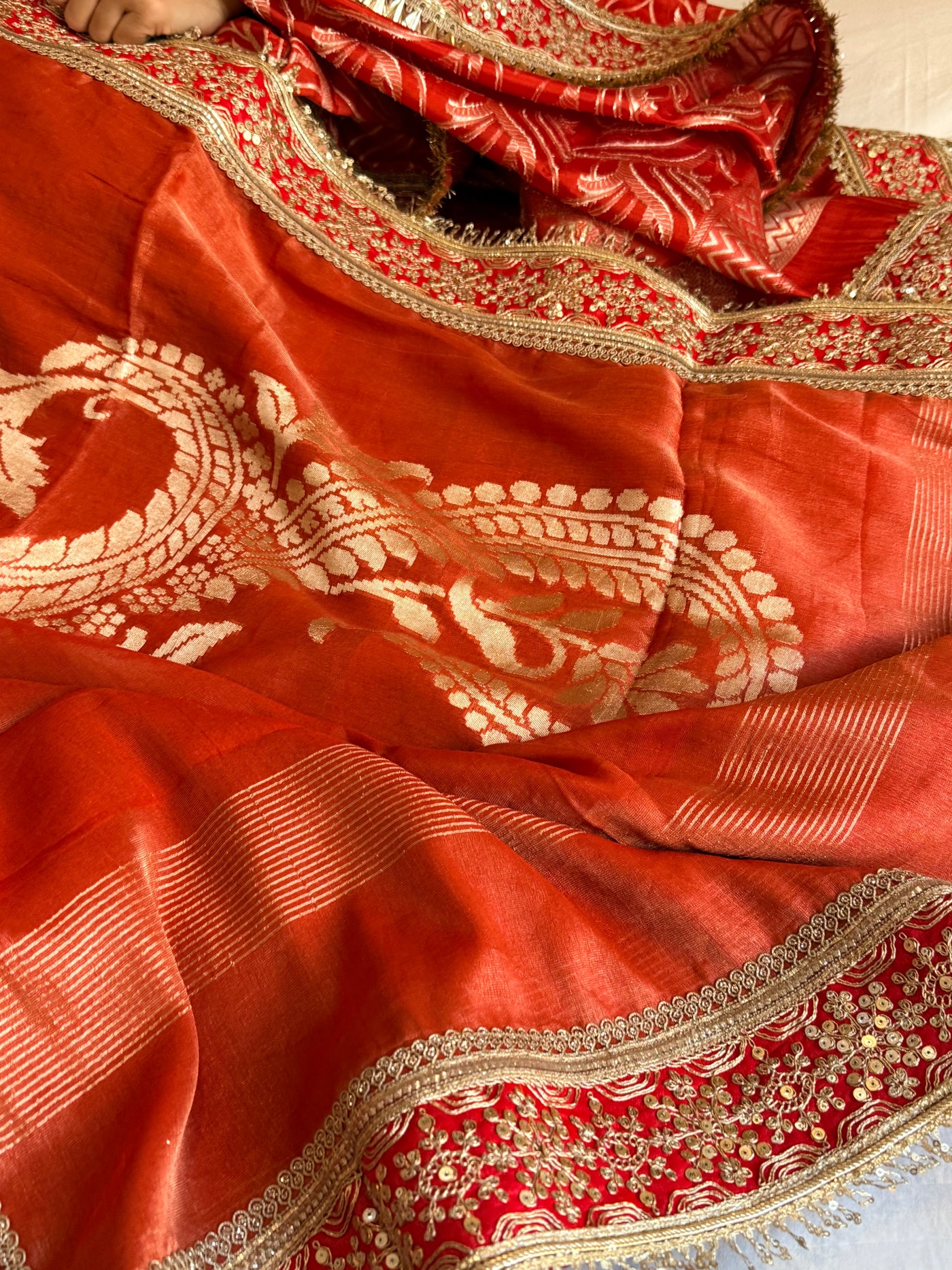 Details: This is pure banarasi saree Technique - kadhwa weaving Saree Length - 5.5 meters Saree Width - 45 inches...