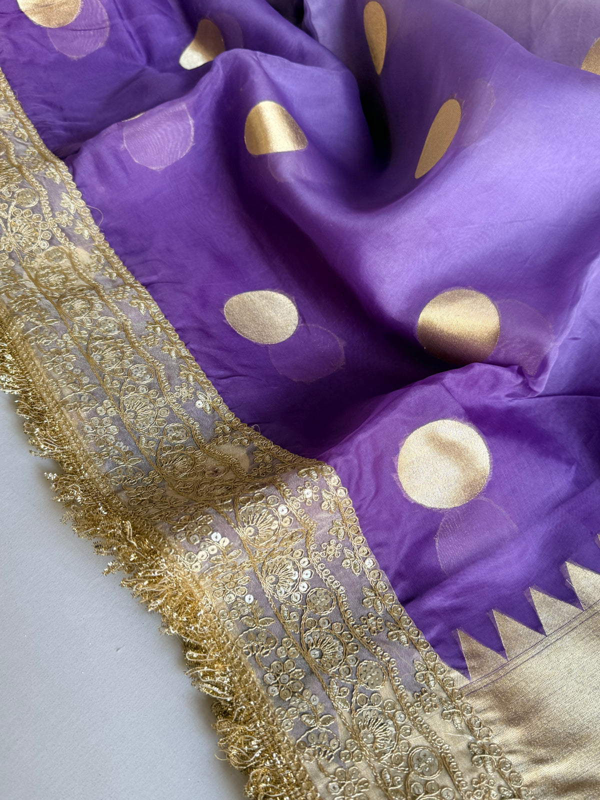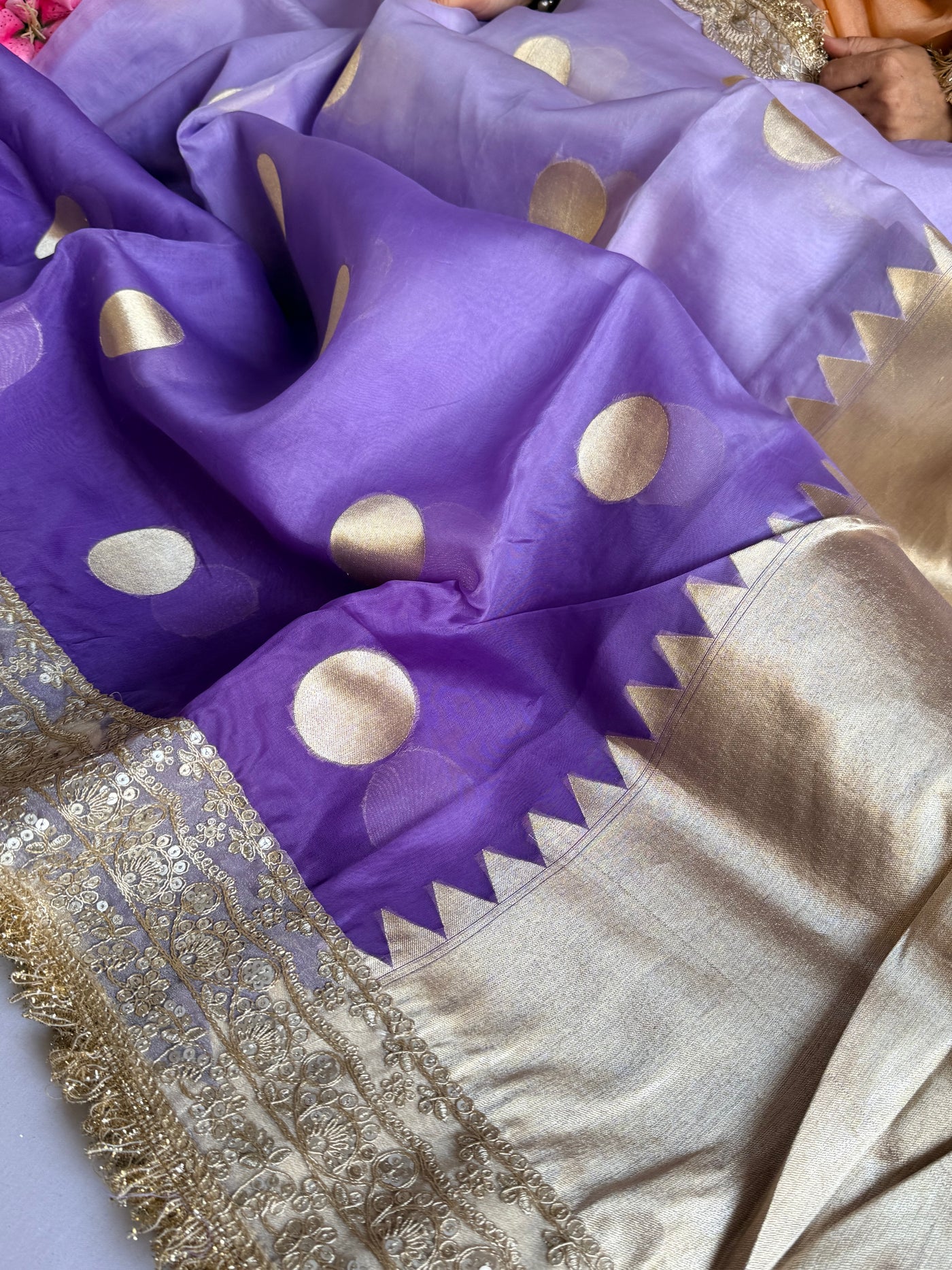 Banarasi leela ombre lilac kora silk kadhwa saree