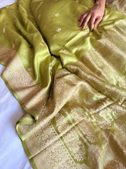 Chutney green banarasi mashru silk kadhwa buti saree