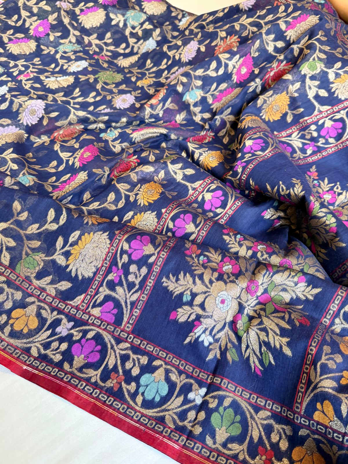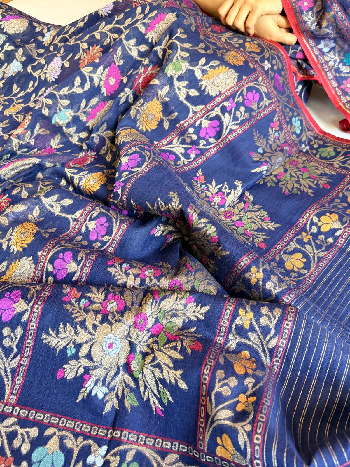 Iktara banarasi cotton jamdani navy blue meenakari saree