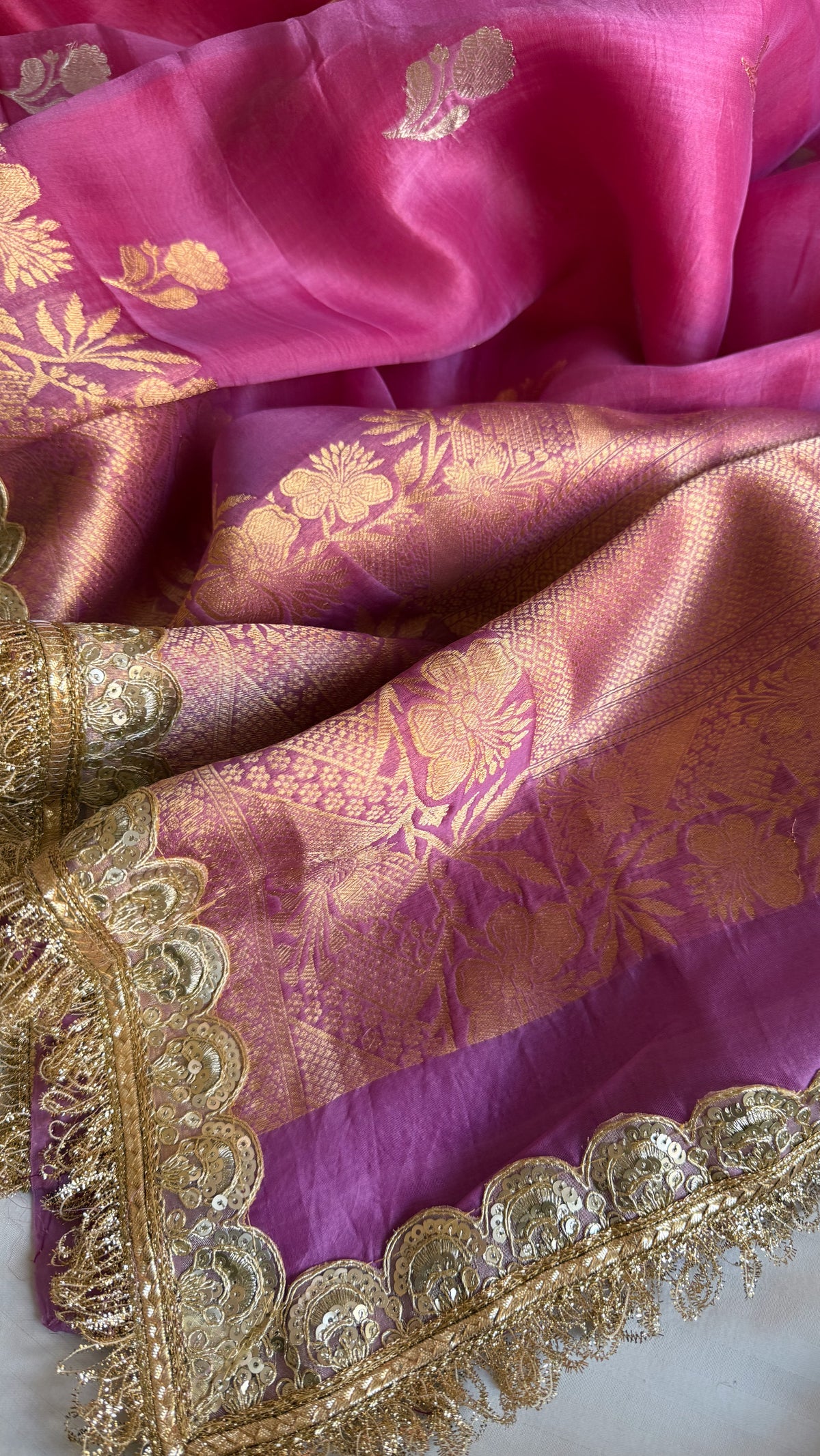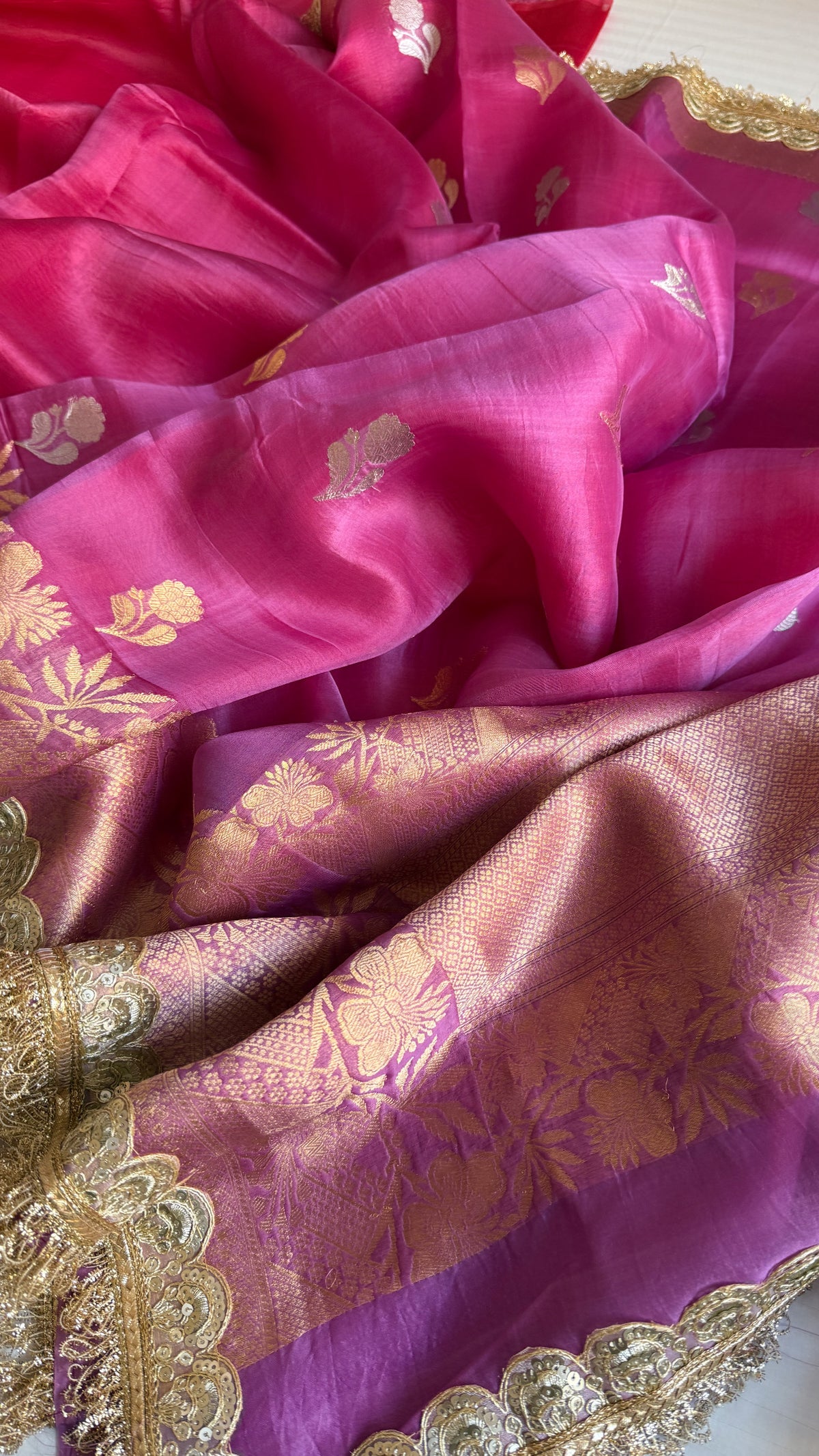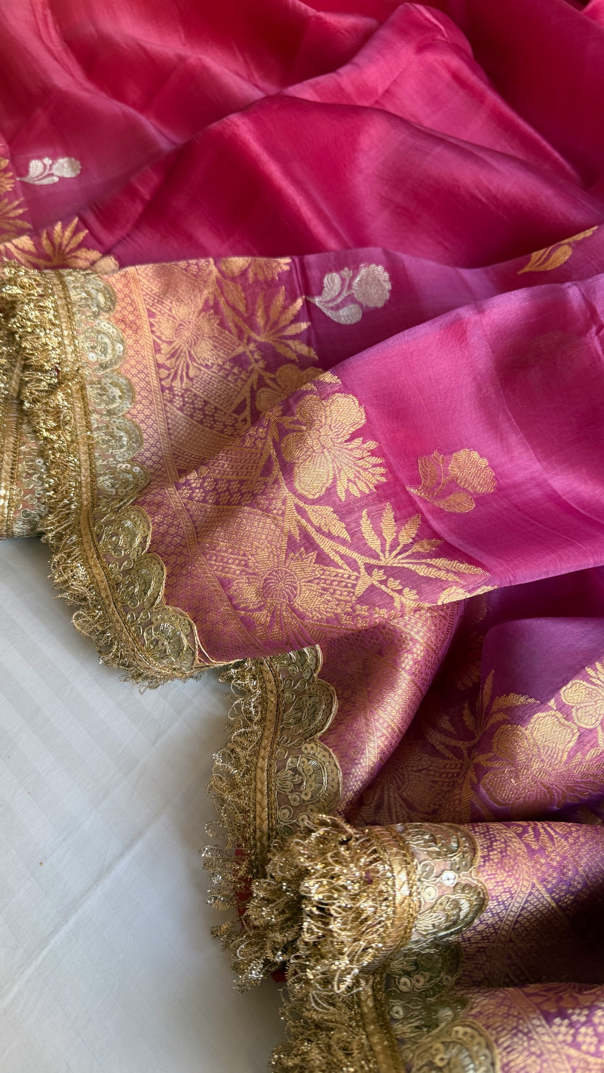 4D rang birangi shaded multicoloured Kora silk Banarasi saree