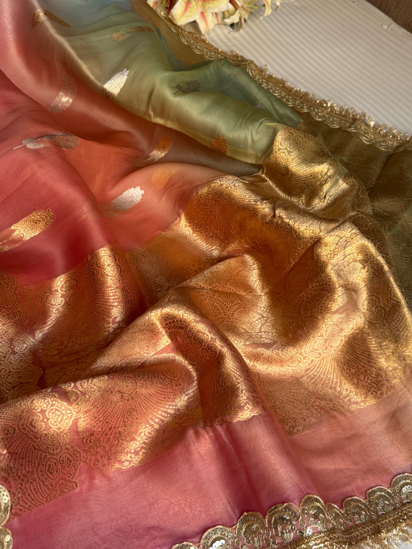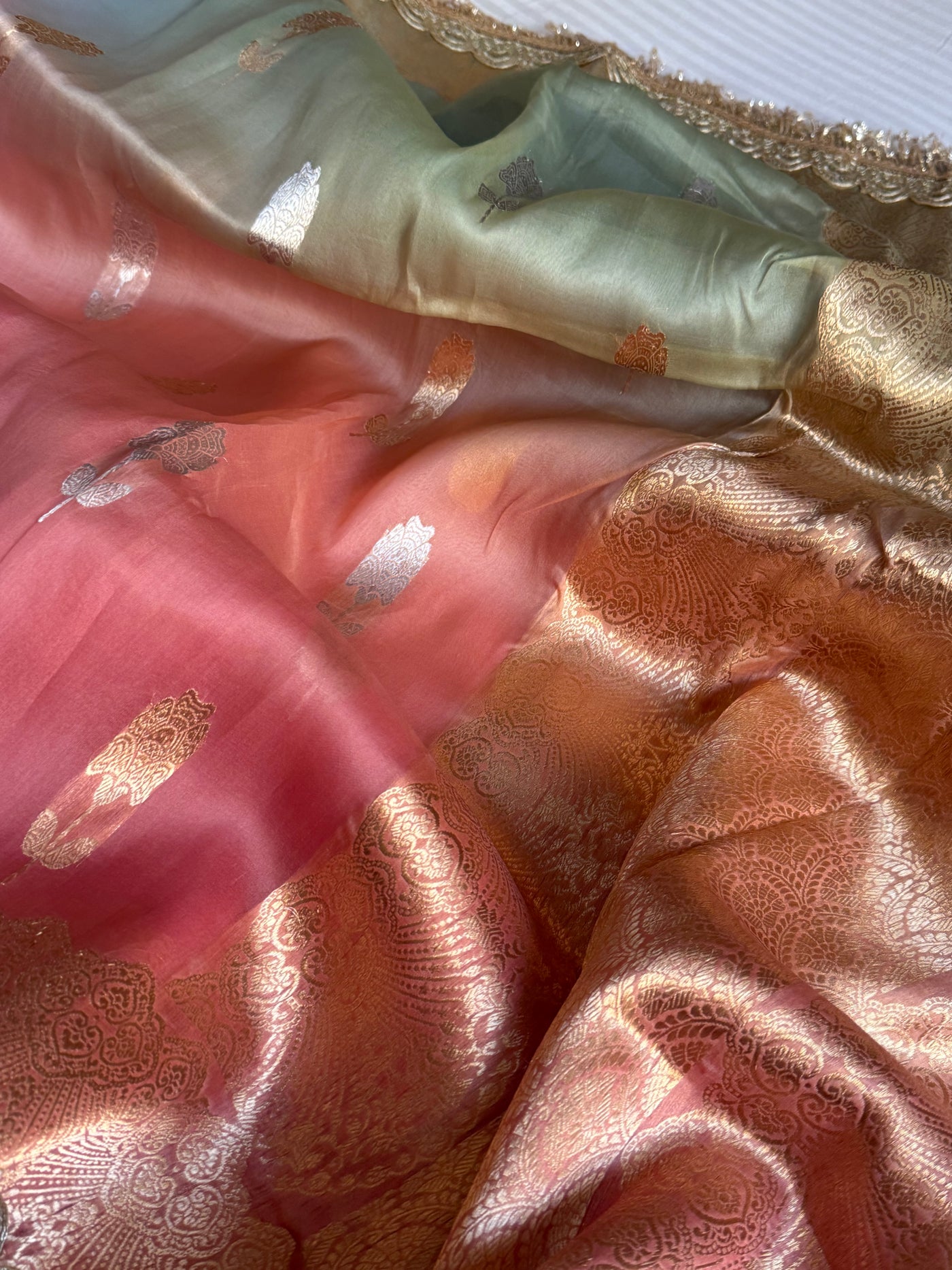 4D rang birangi shaded multicoloured Kora silk kadhwa banarasi sarees
