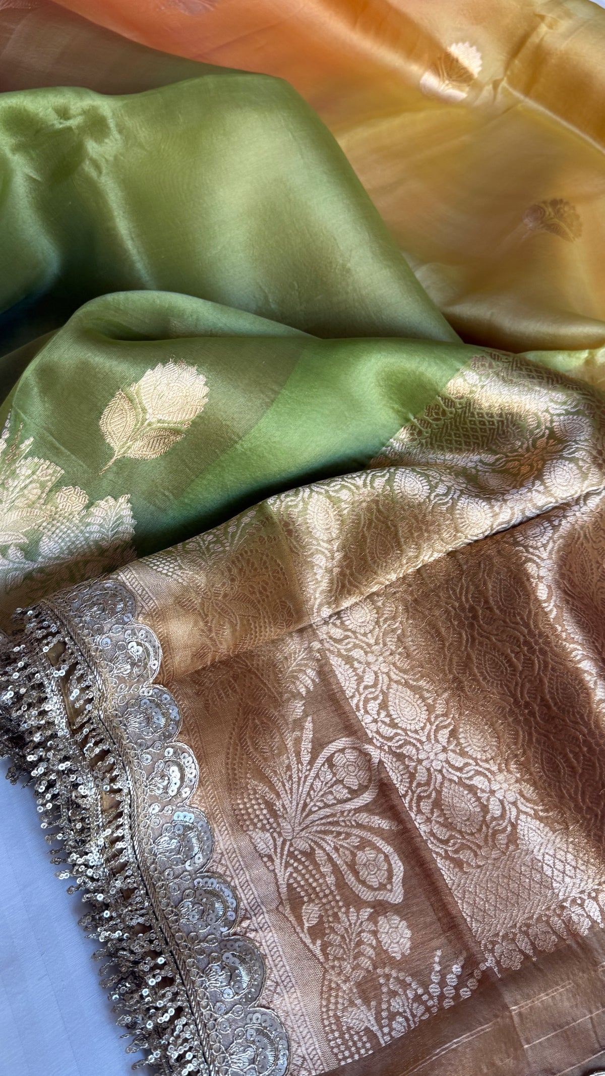 4D shaded rang birangi multicoloured kora silk Banarasi saree