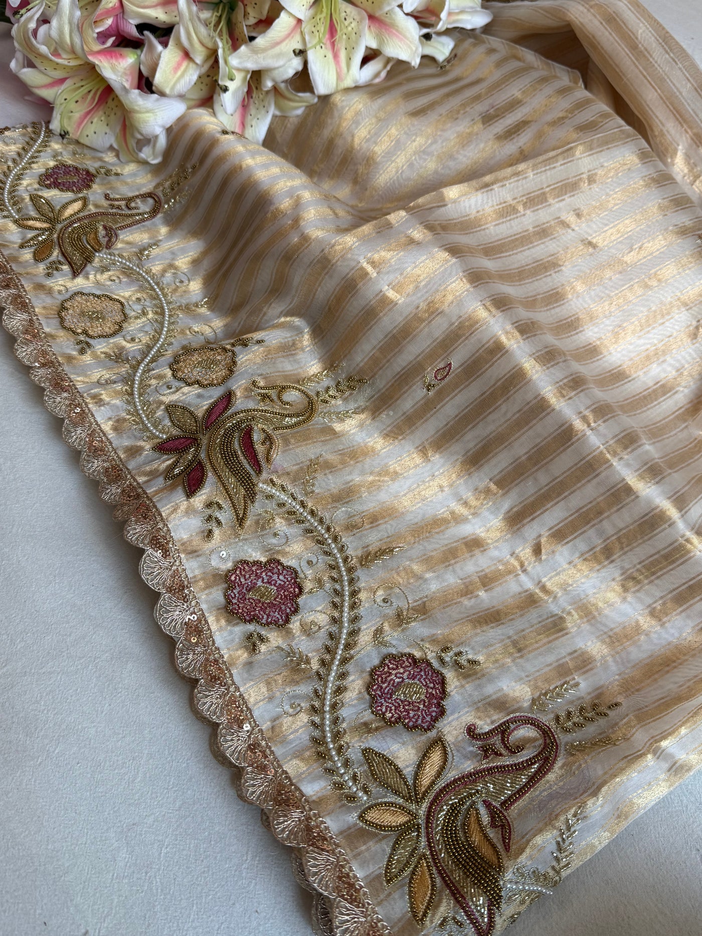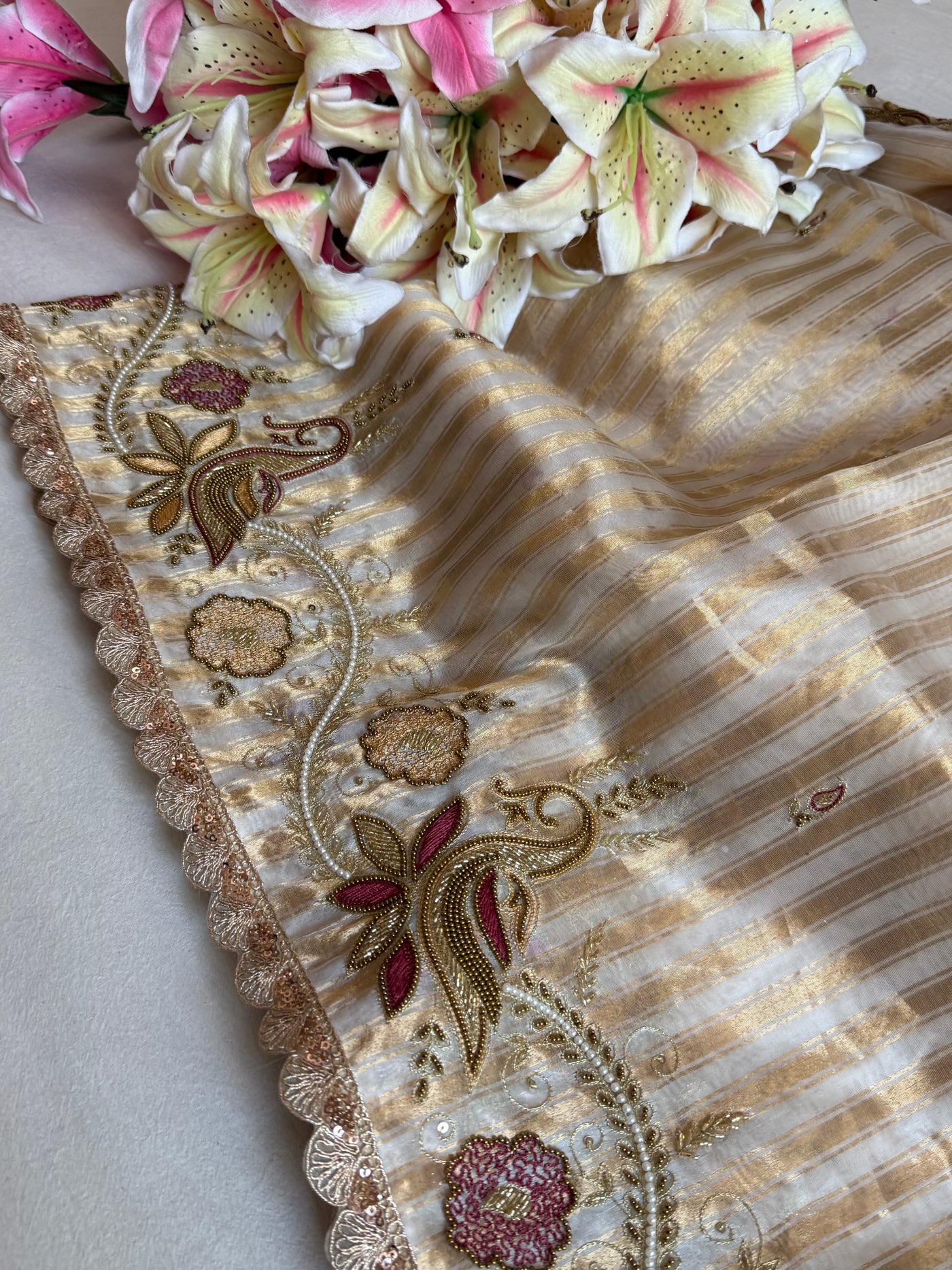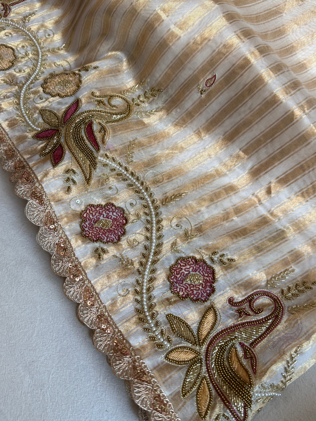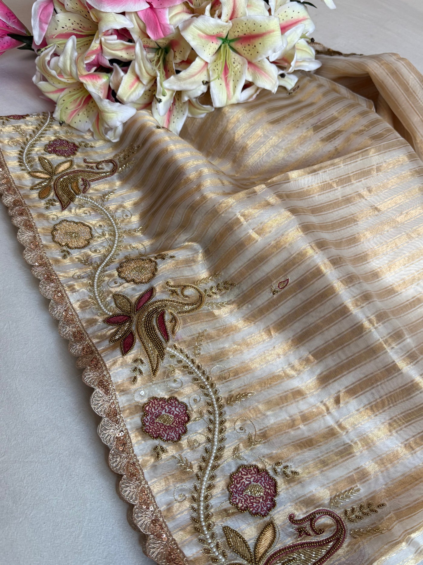 90s bollywood inspired banarasi diamond tissue silk zari striped shikargah border meenakari sarees