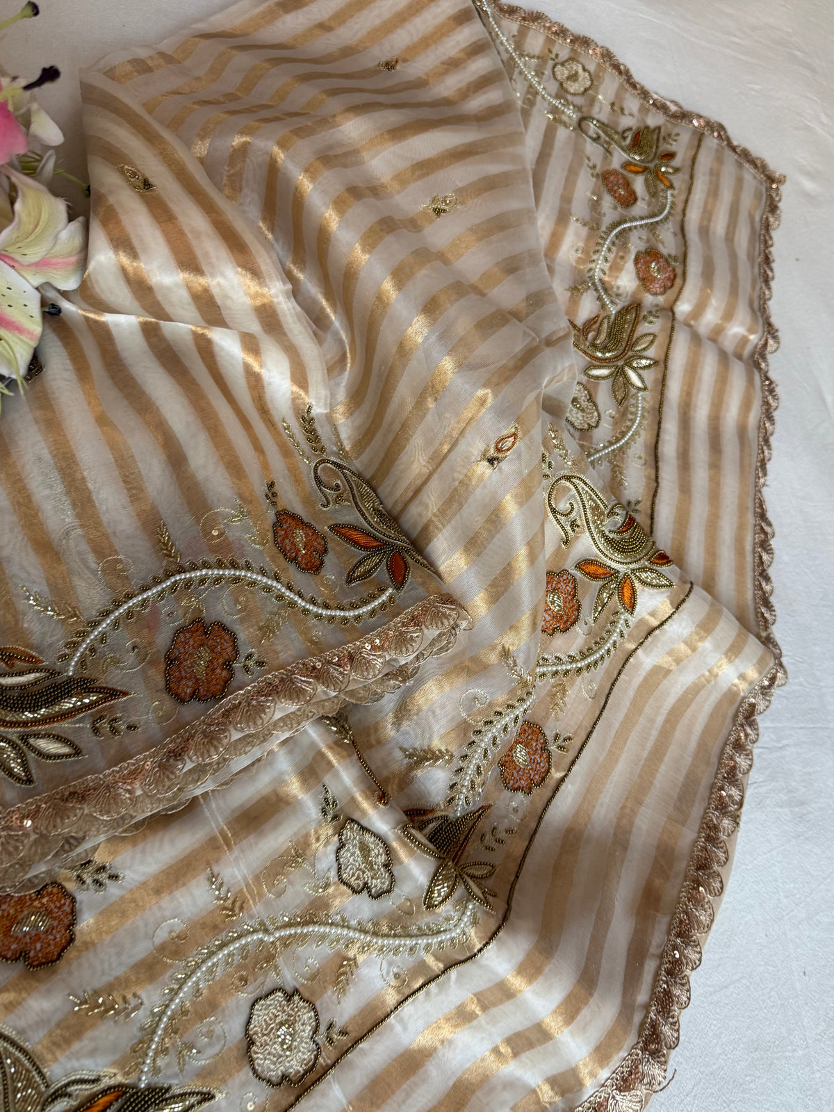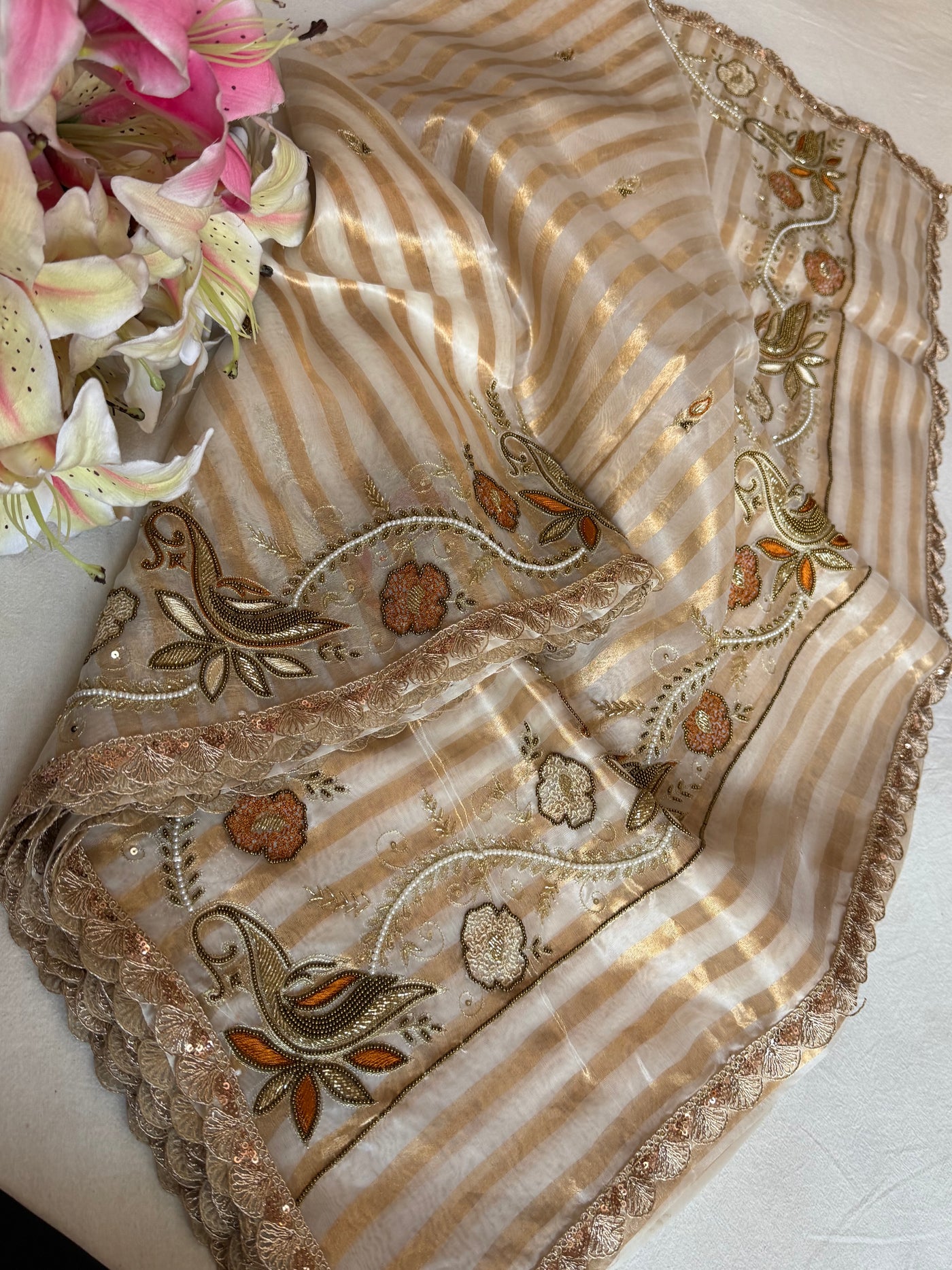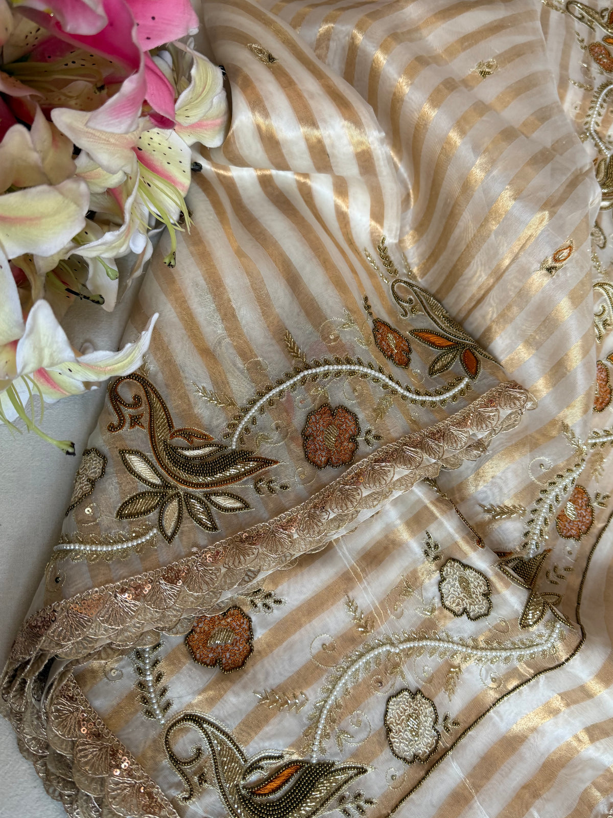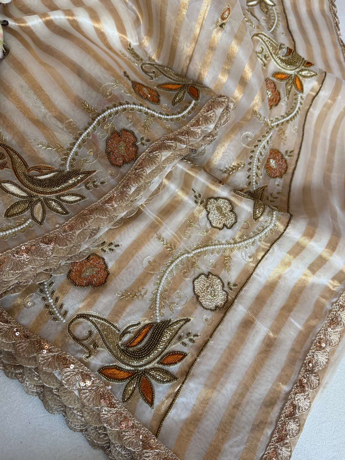 90s bollywood inspired Banarasi diamond tissue zari striped shikargah border meenakari tissue saree