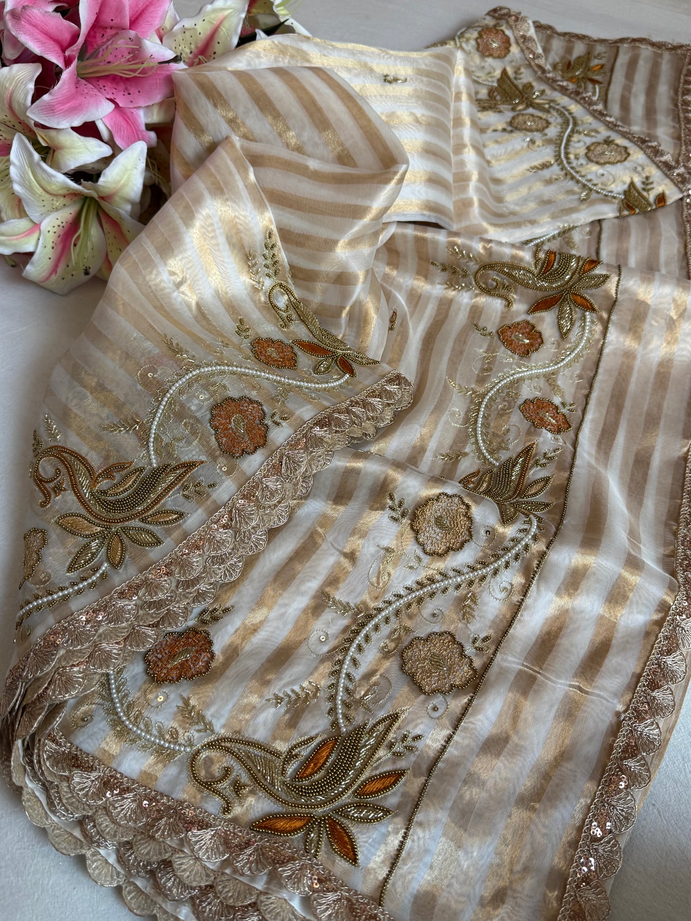90s bollywood inspired diamond tissue silk striped shikargah border meenakari kadhwa saree
