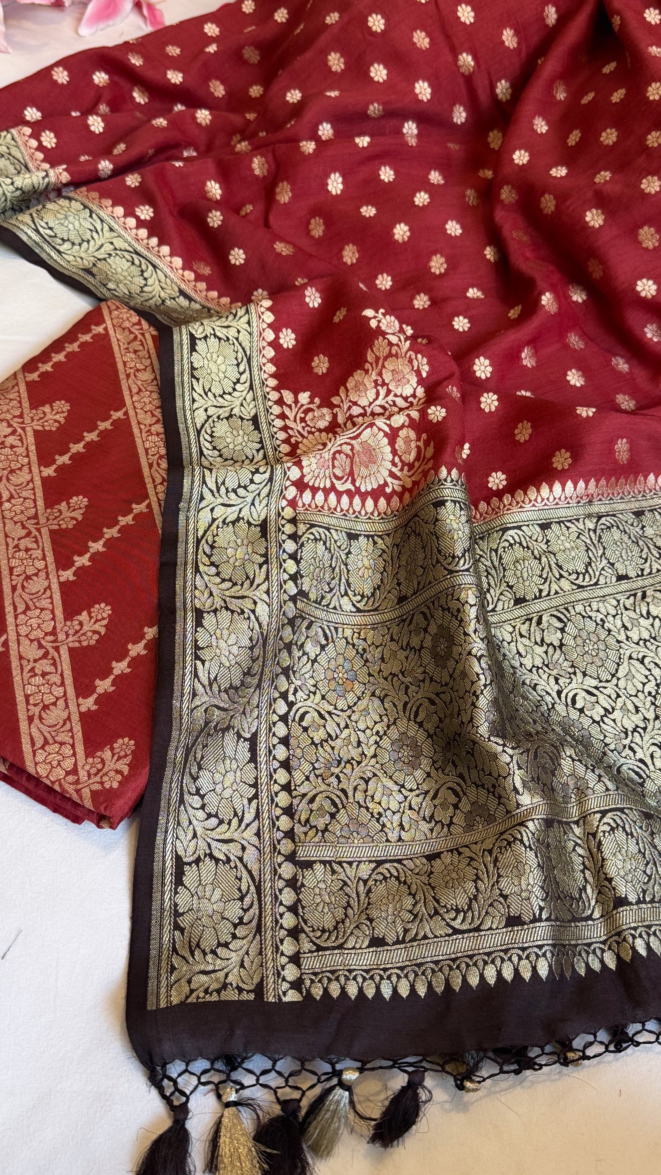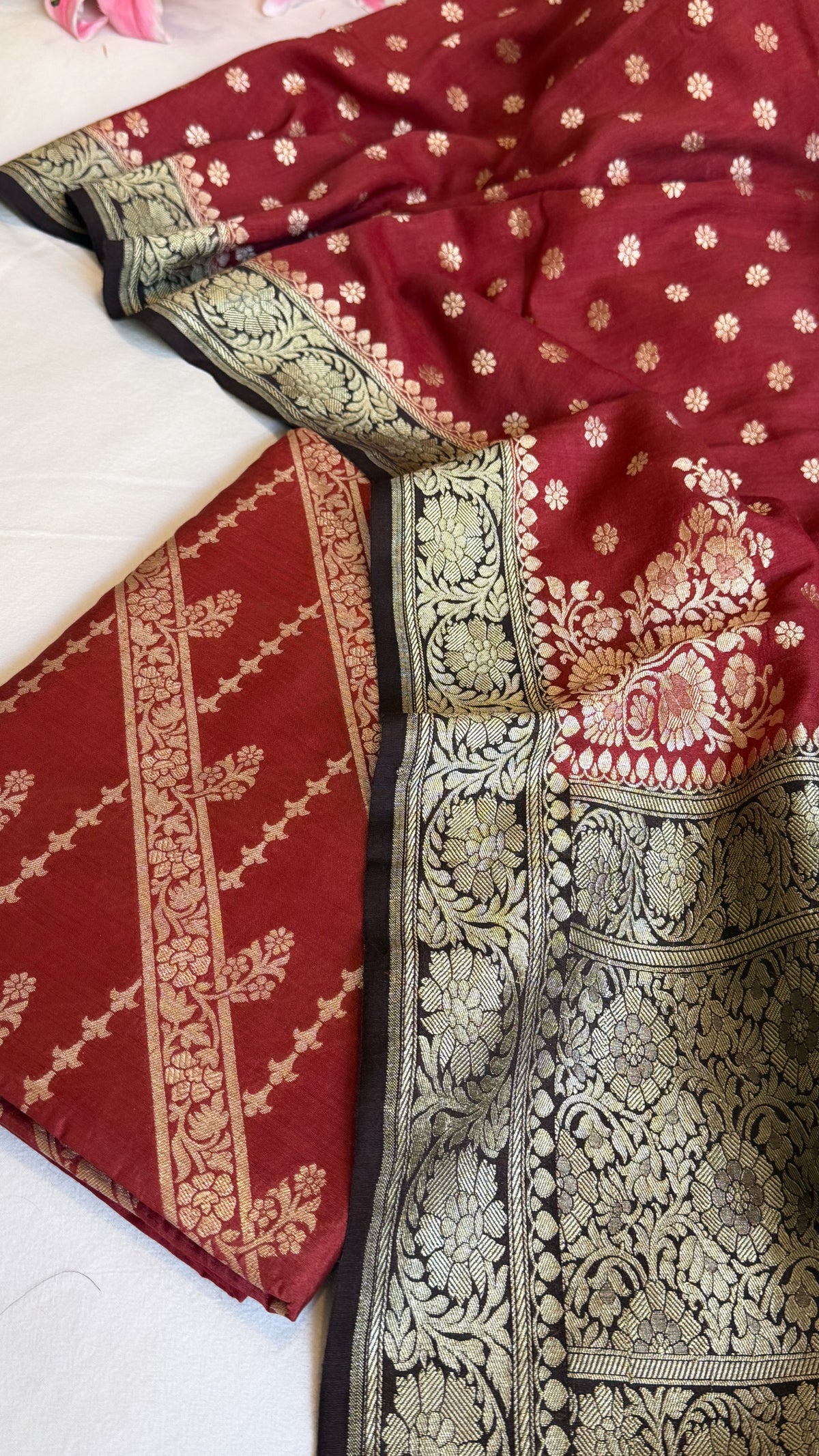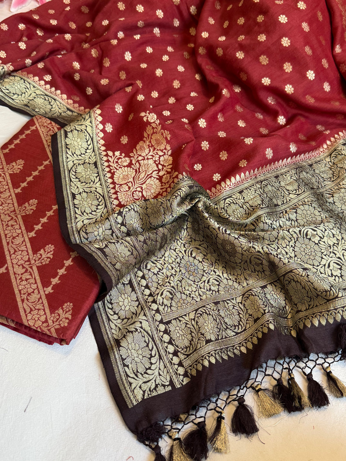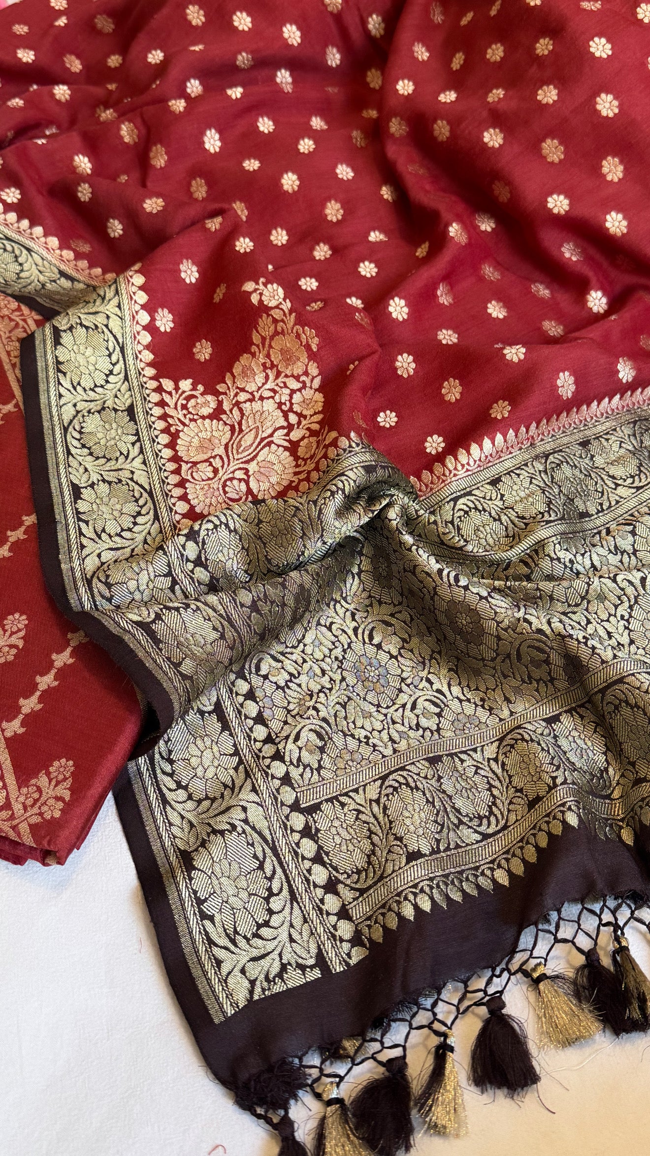 Banarasi brick red - black chiniya silk kurta paired with moonga silk duppata set