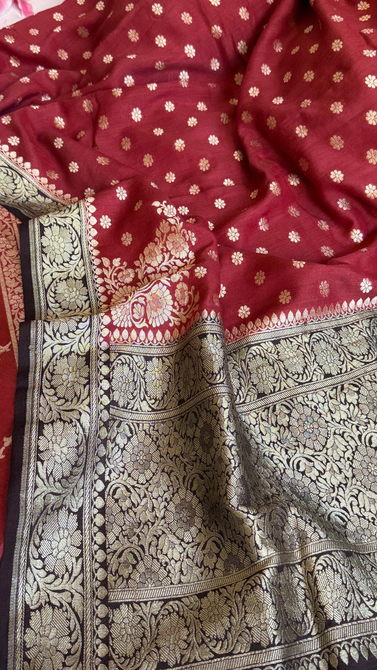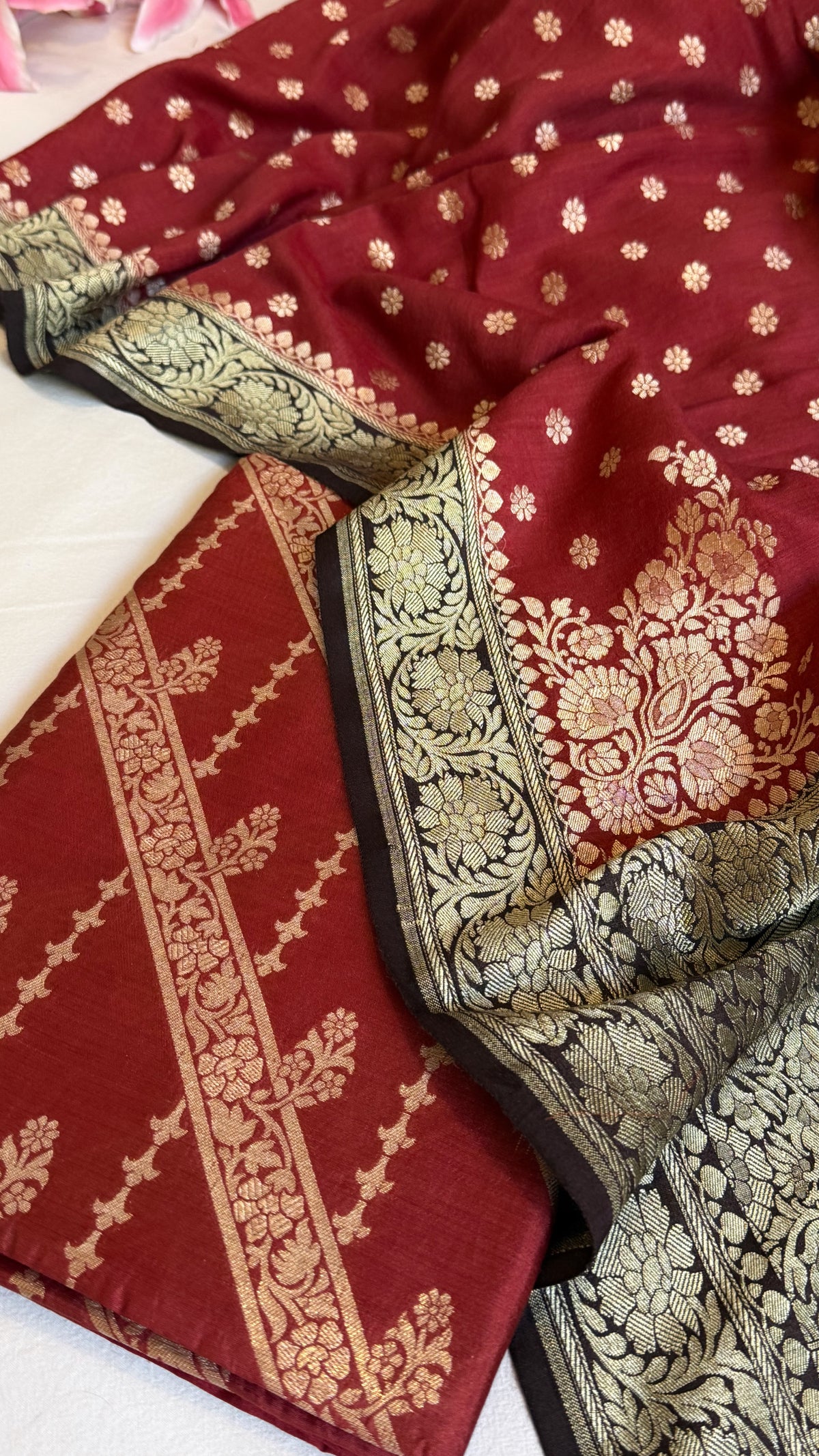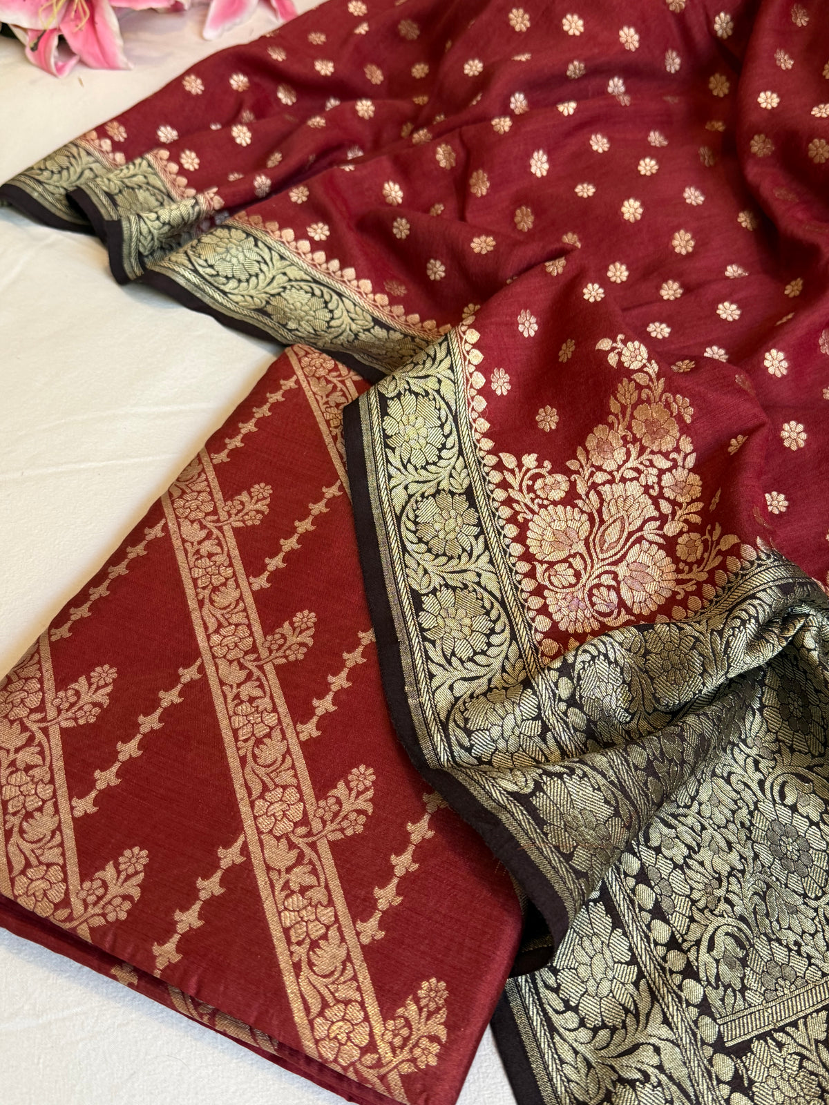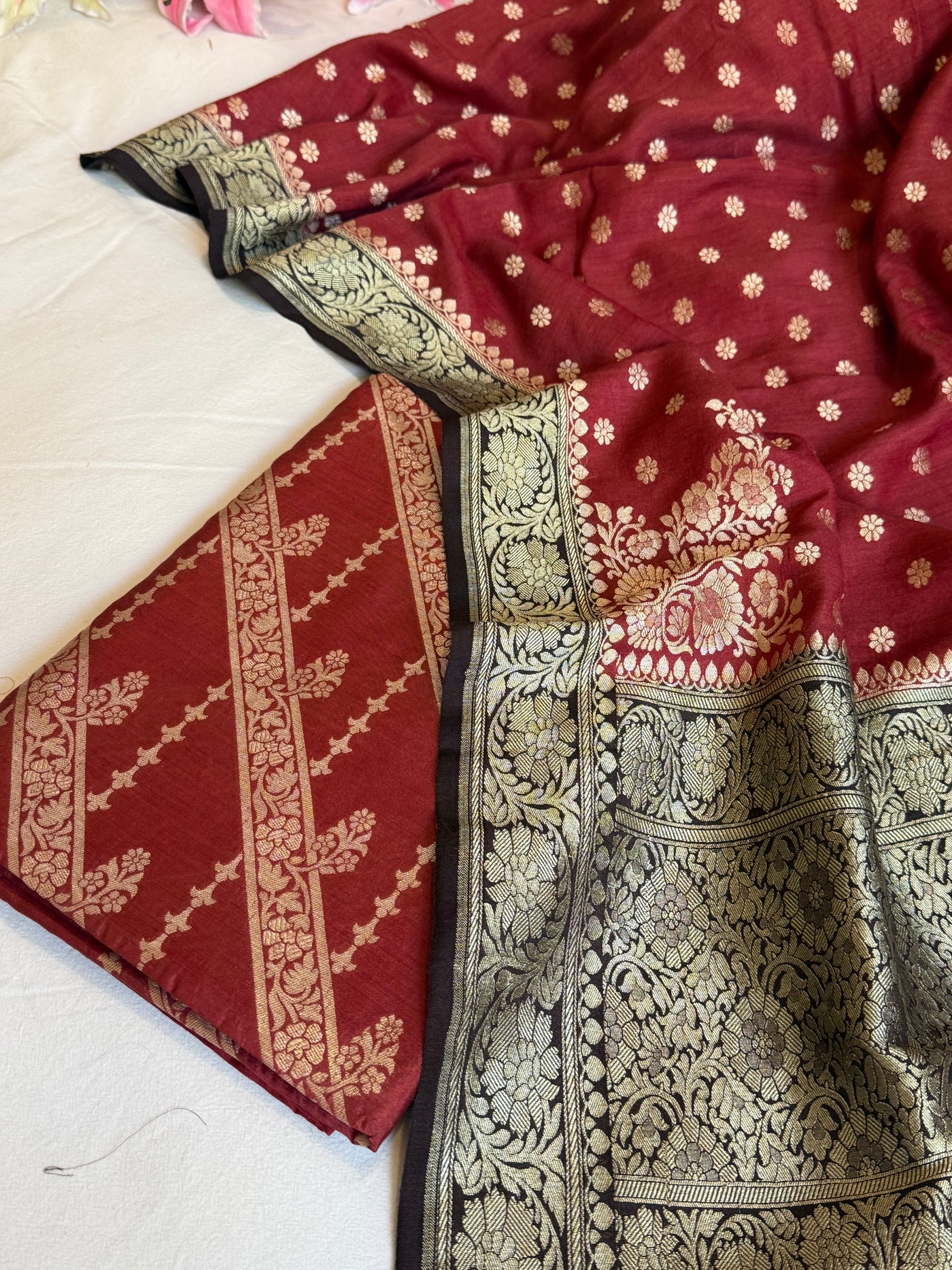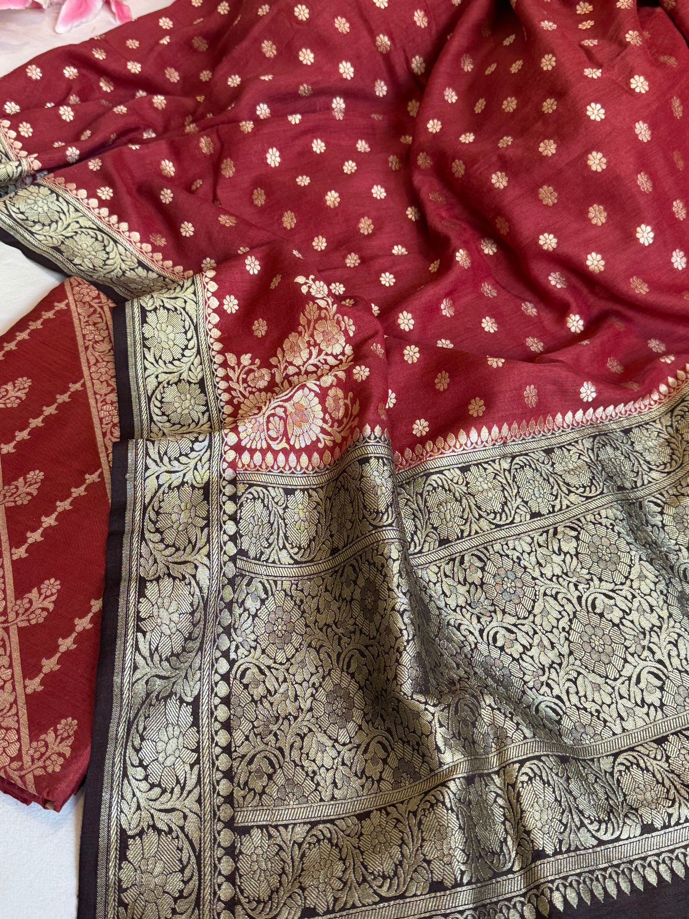 Banarasi brick red - black chiniya silk kurta paired with moonga silk duppata set