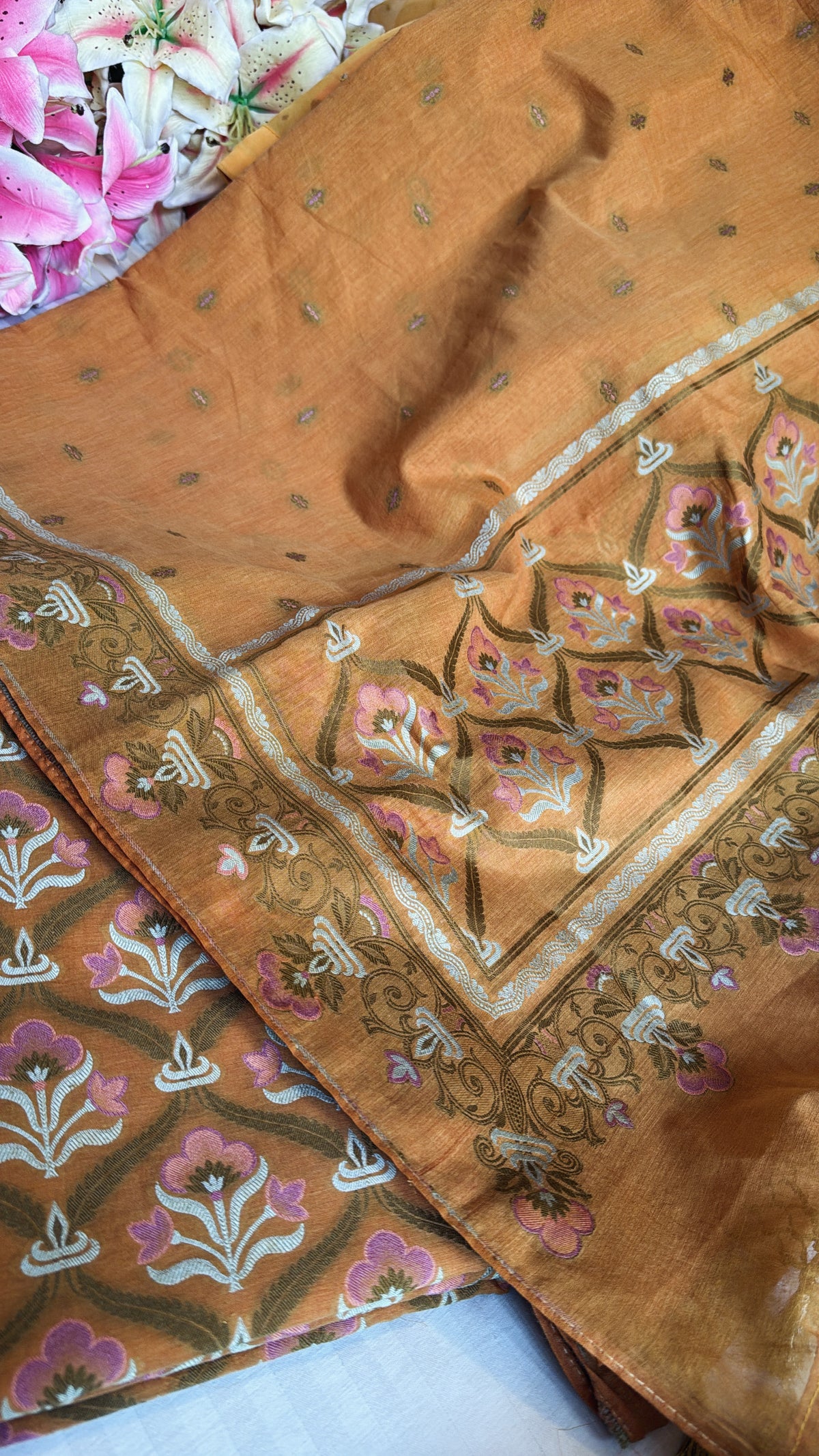 Details: The suit set includes kurta, duppata and bottom set Technique - kadhwa weaving Kurta Length - 2.5 meter Kurta...