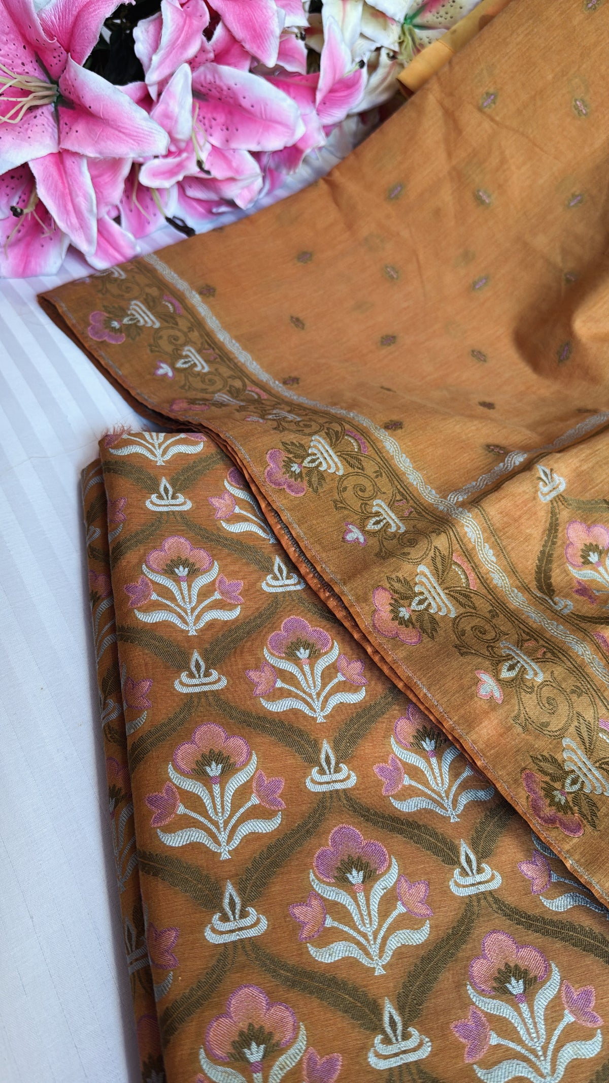 Elevate your wardrobe with this exquisite handwoven cloth, a true testament to Varanasi’s legendary craftsmanship. Meticulously created by master weavers, this piece blends opulent fabrics, intricate zari work, and traditional motifs for a regal drape.