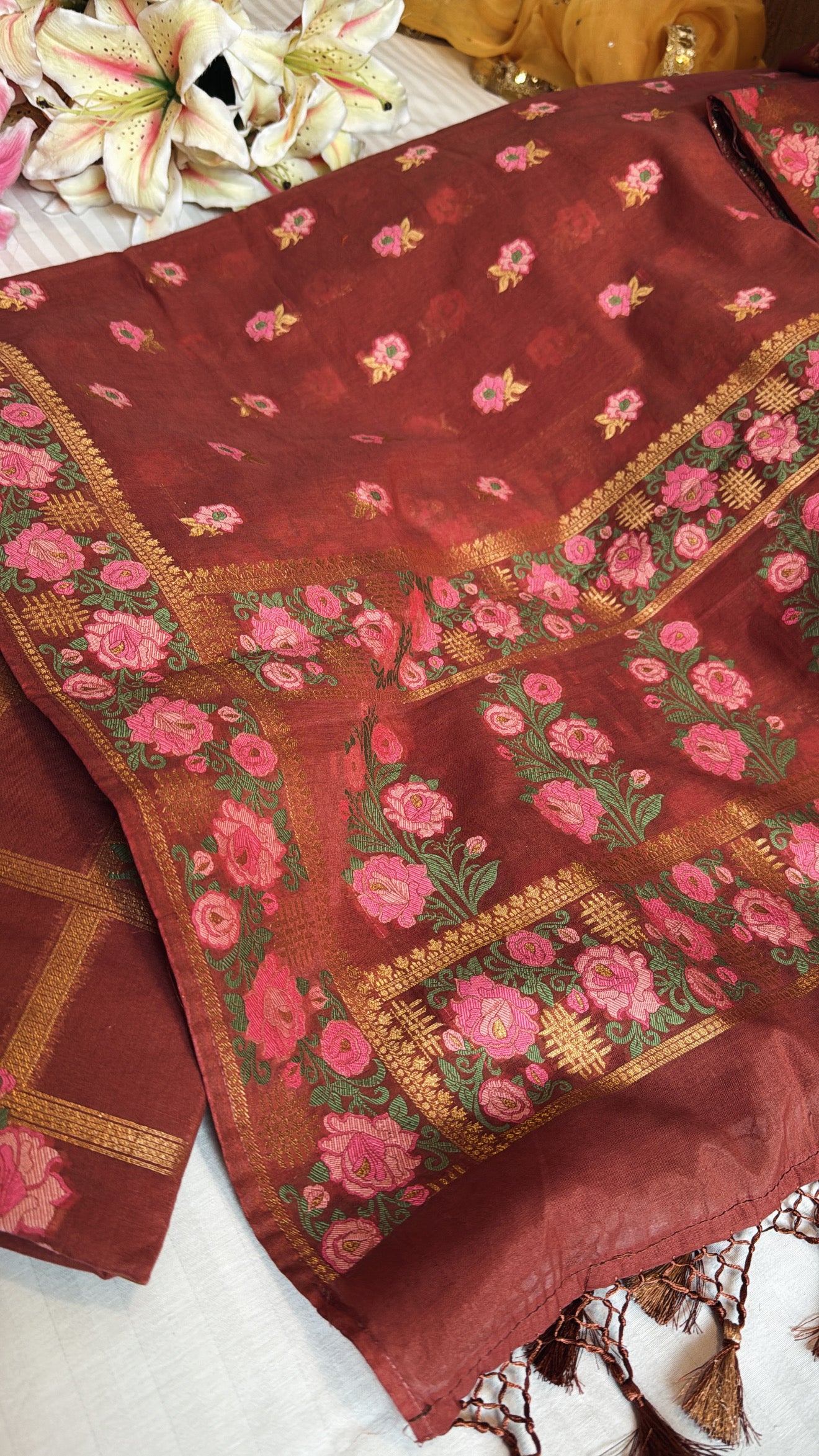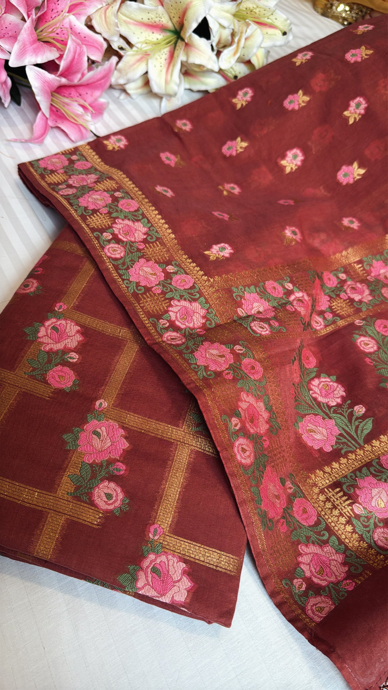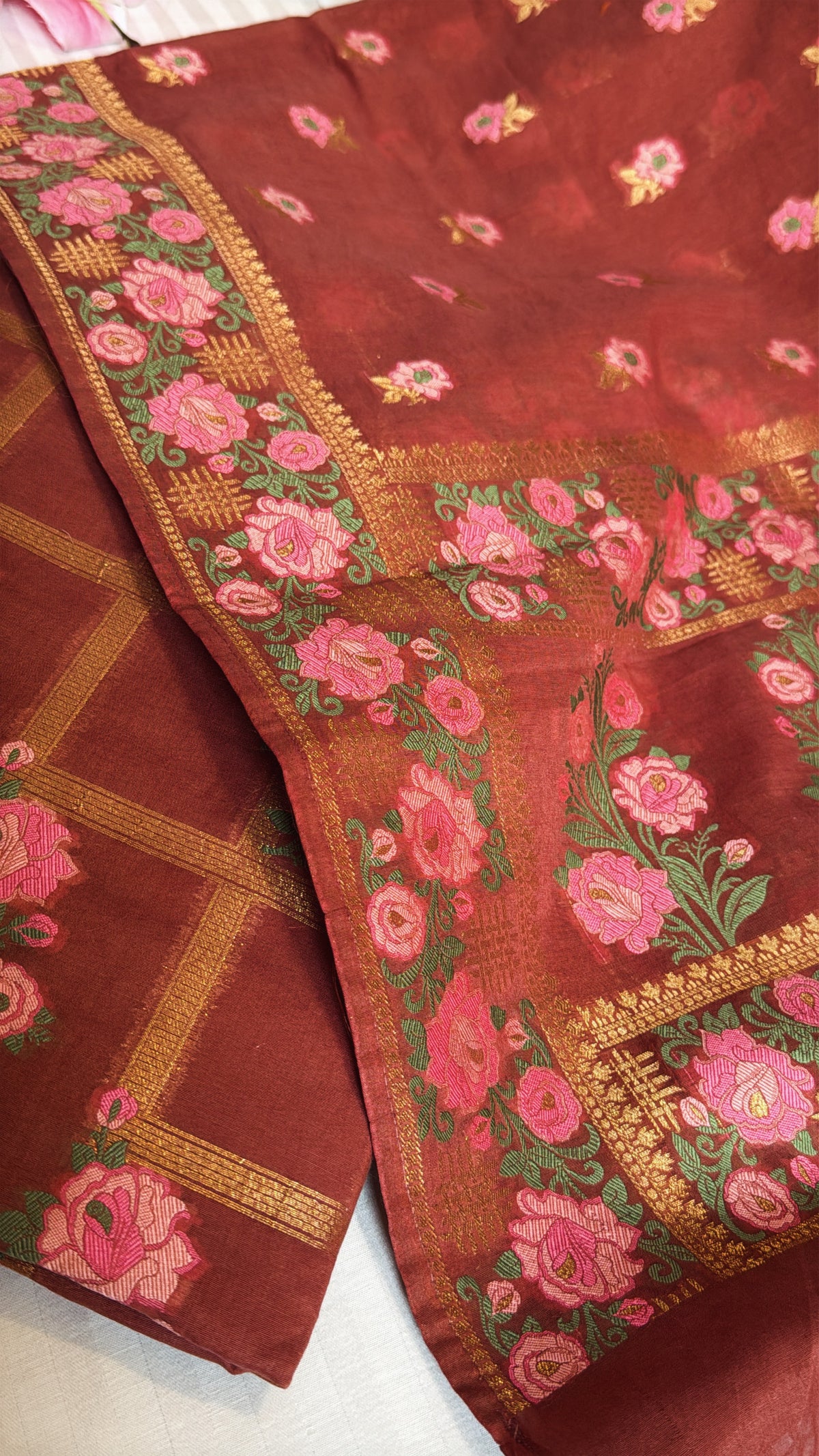 Details: The suit set includes kurta, duppata and bottom set Technique - kadhwa weaving Kurta Length - 2.5 meter Kurta...