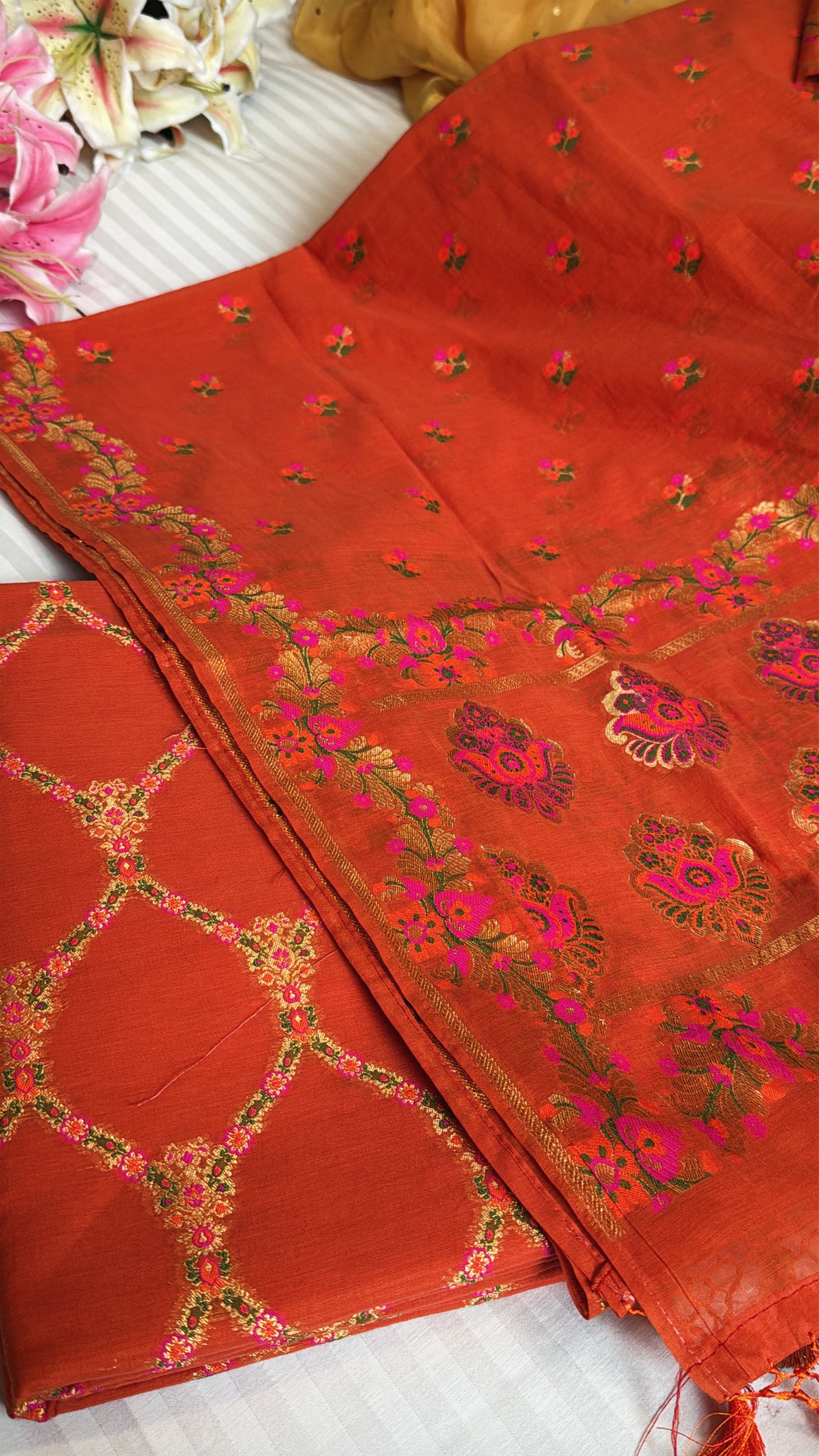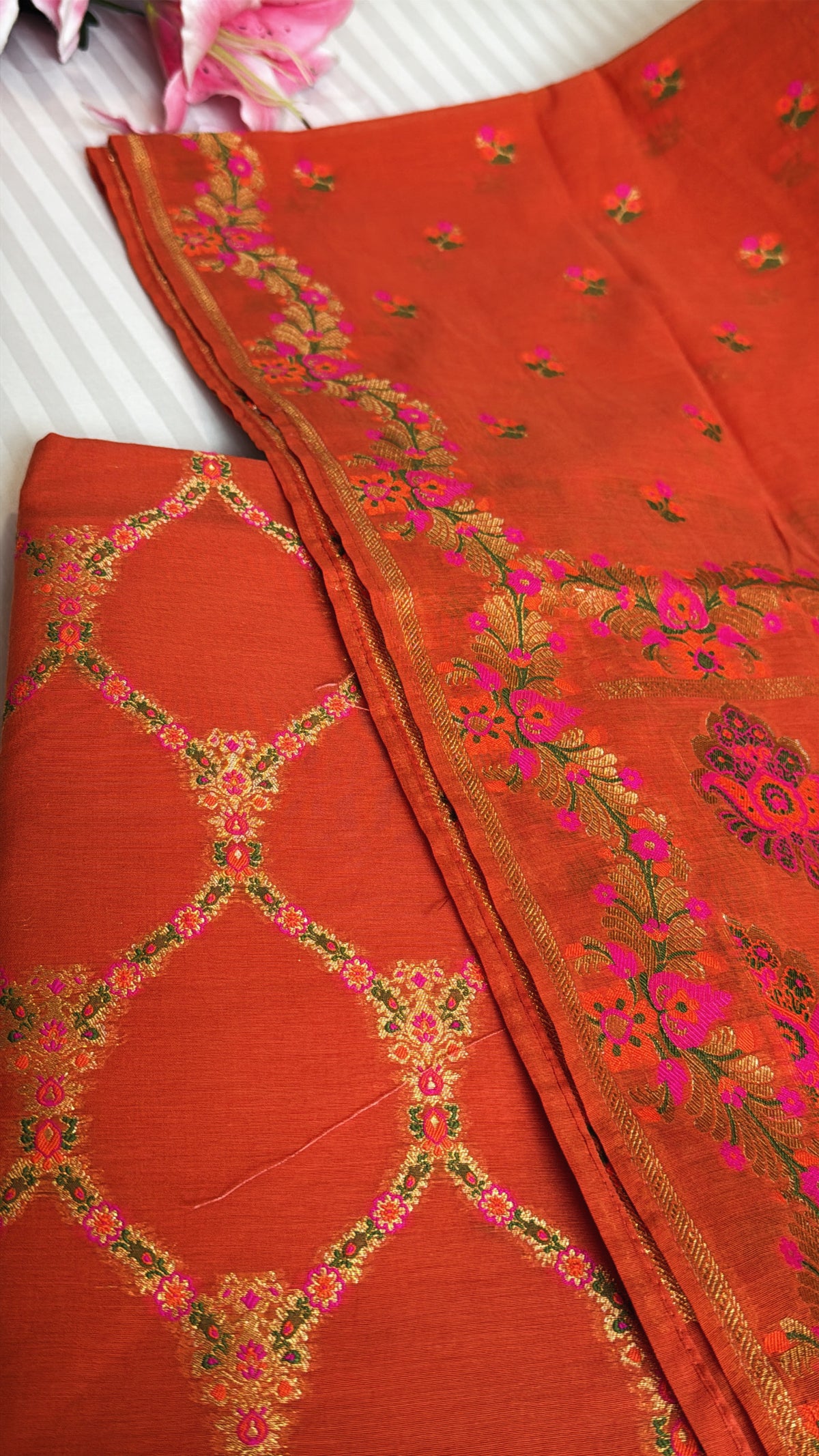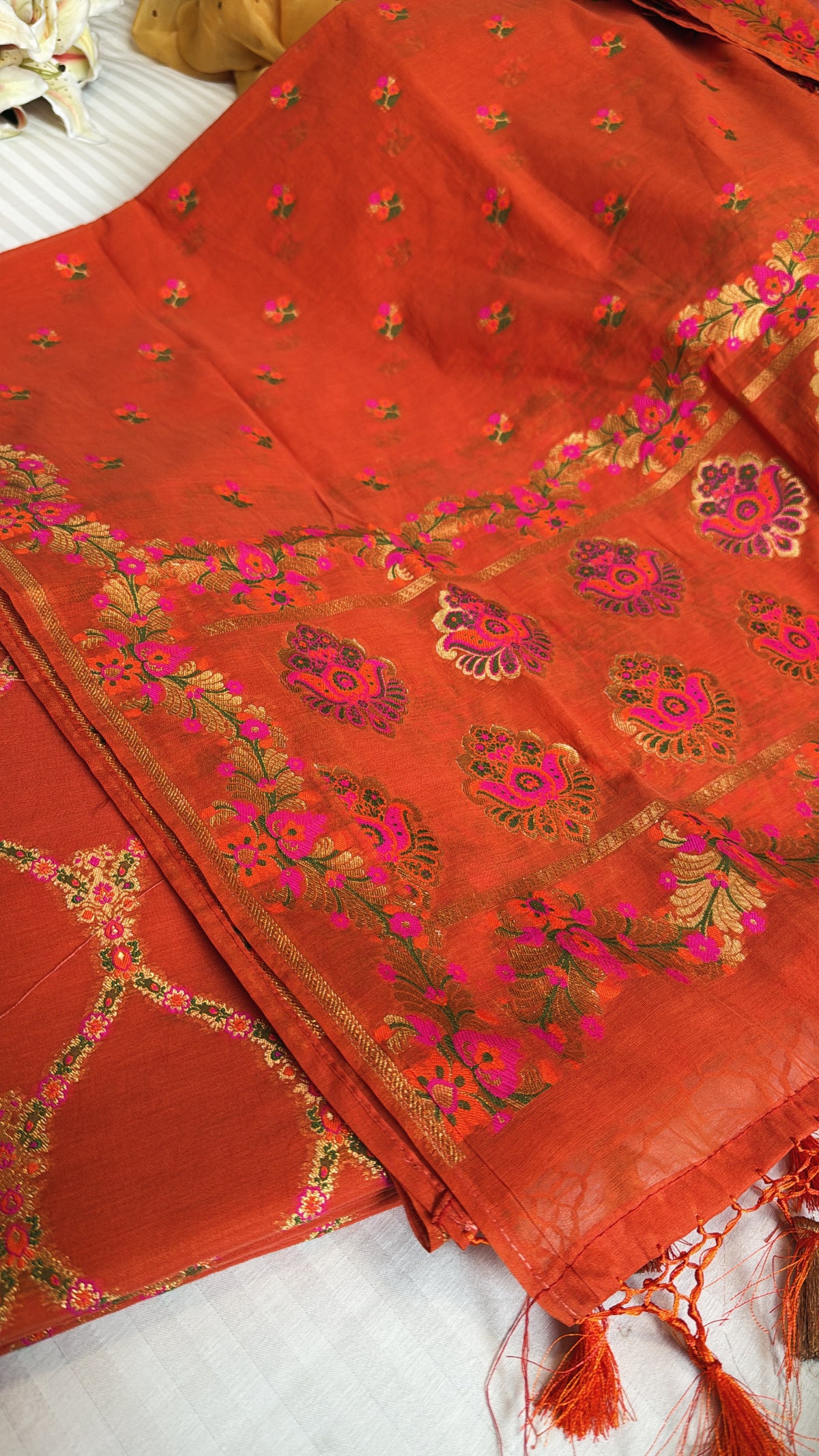 Banarasi cotton silk resham meenakari kadhwa suit set