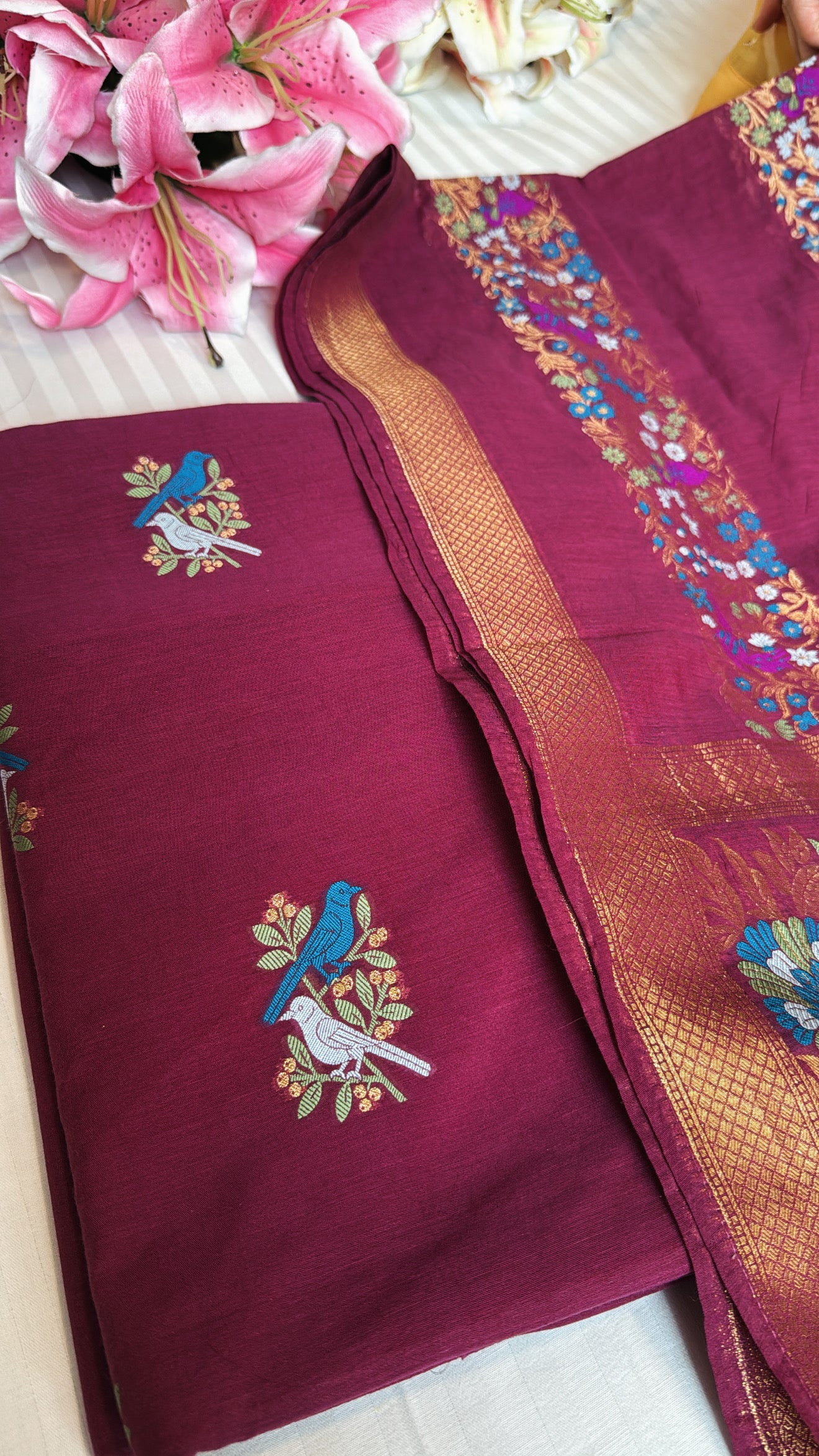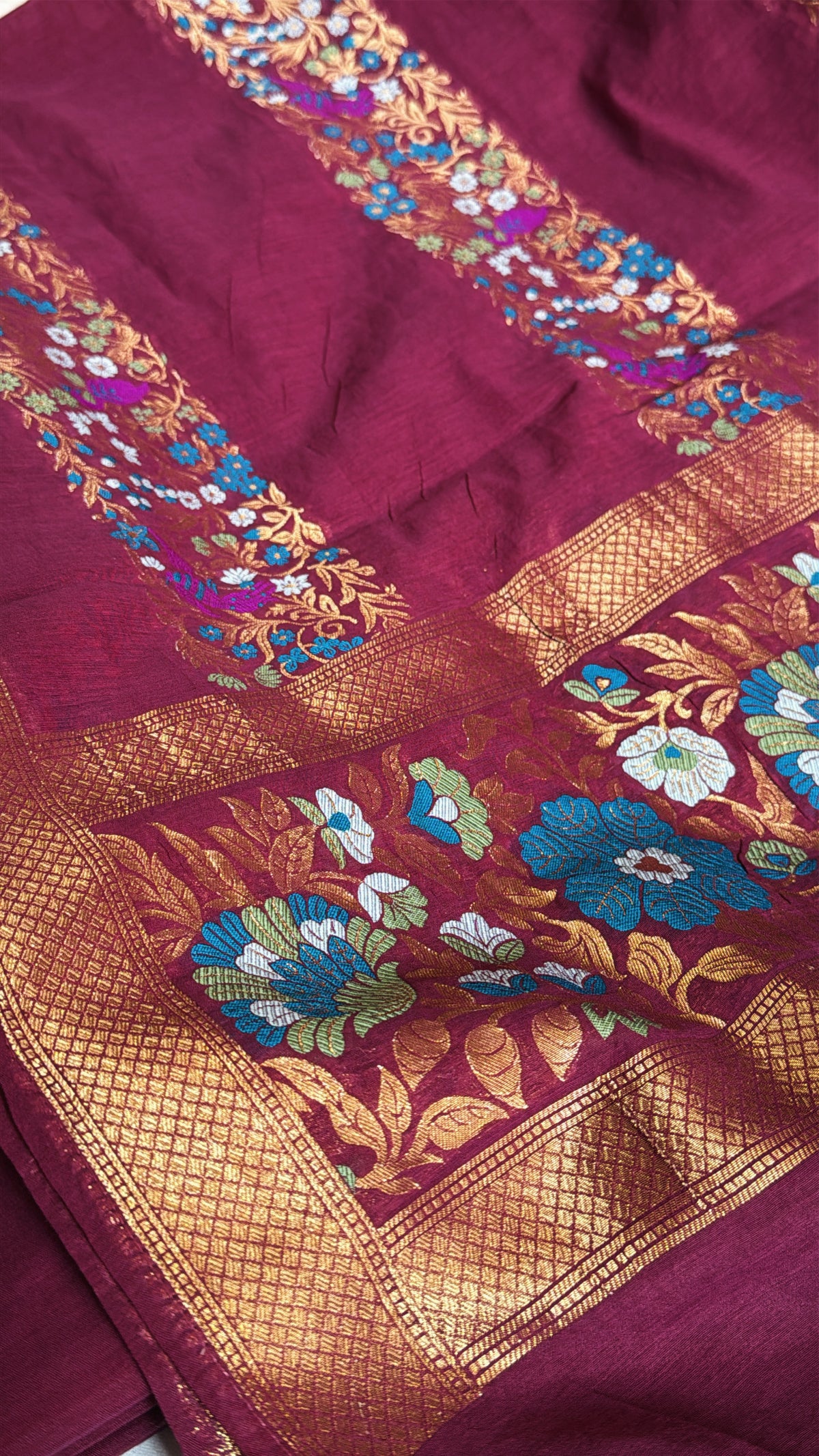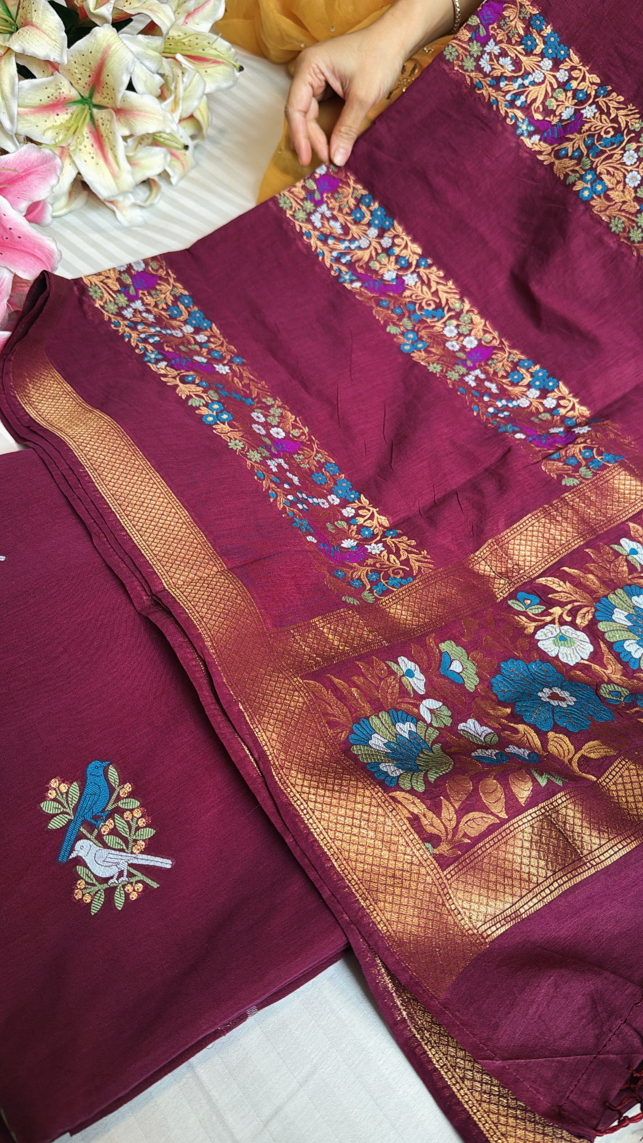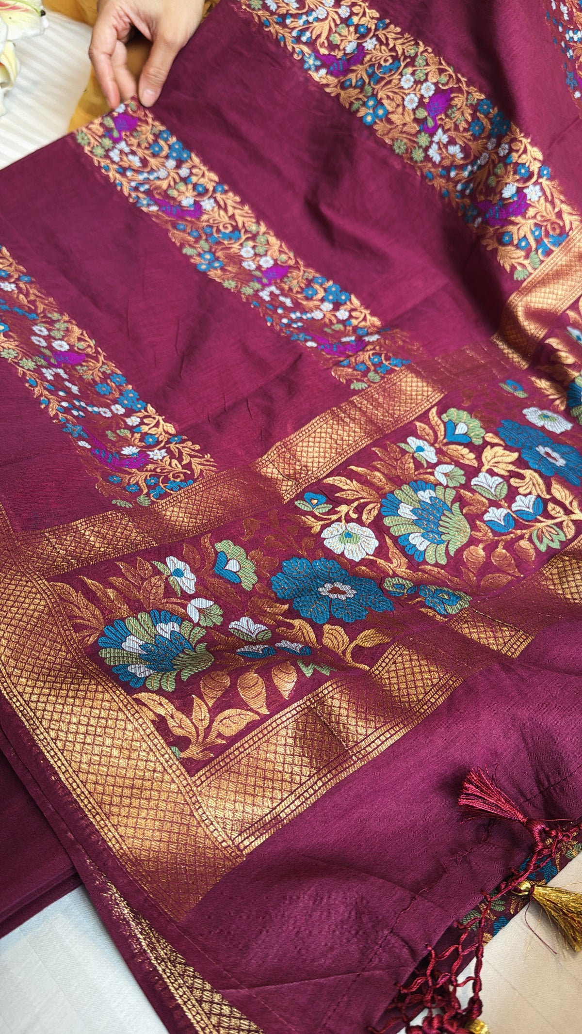 Banarasi cotton silk resham meenakari kadhwa suit set