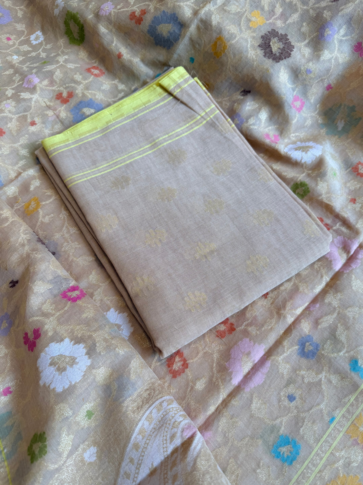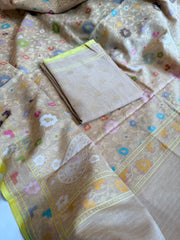 Banarasi iktara jamdani beige sona rupa kadhwa suit set