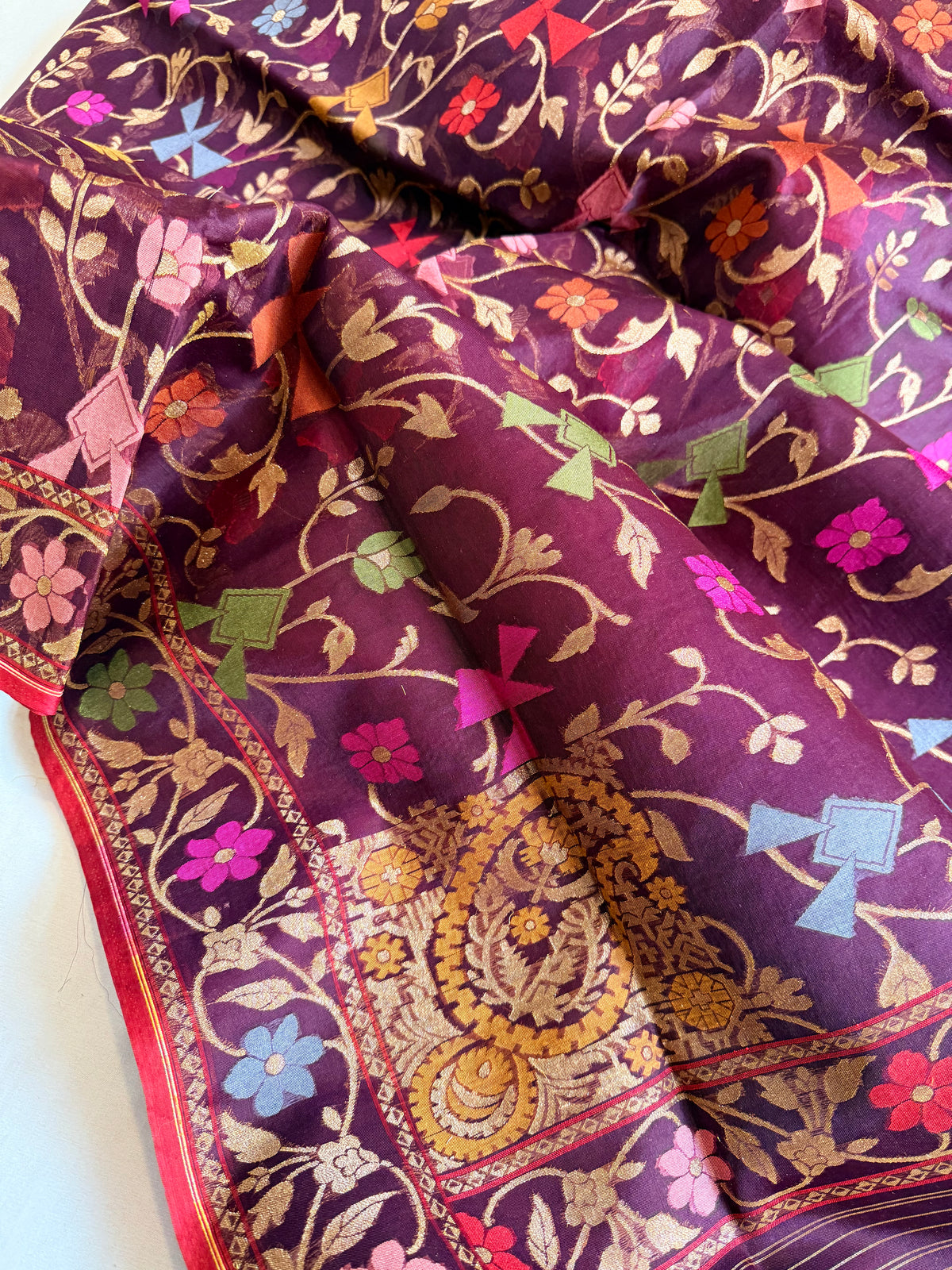 Banarasi kora silk net plum purple iktara jamdani kadhwa saree