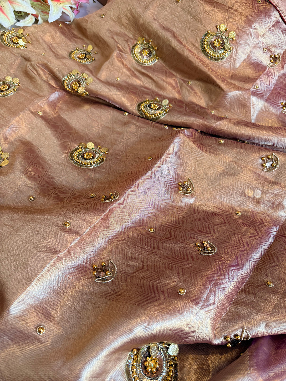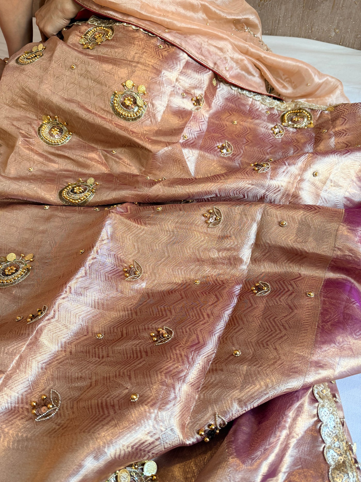 Banarasi tissue brocade jadau work hand embroidered kadhwa purple saree