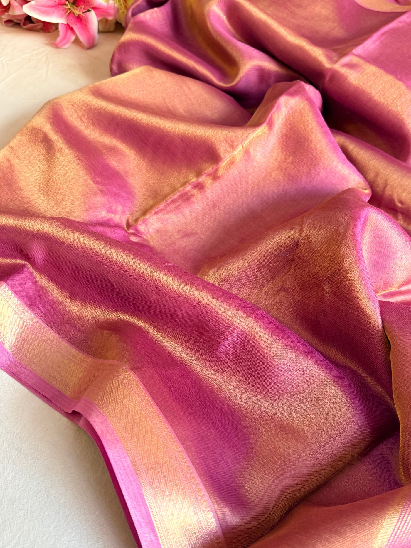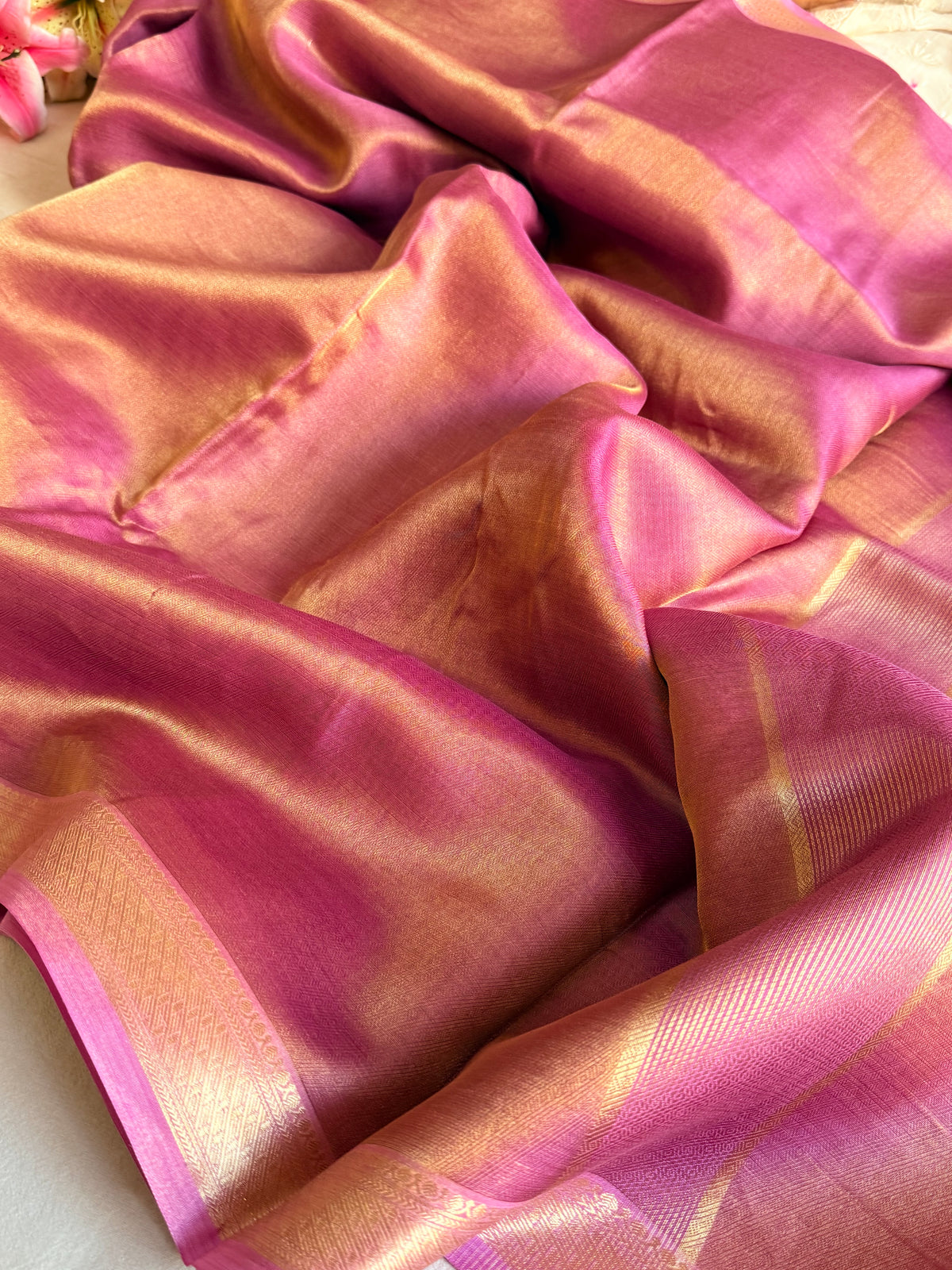 Below 10k - Banarasi pashmina tissue gorgette soft silk kadhwa border saree