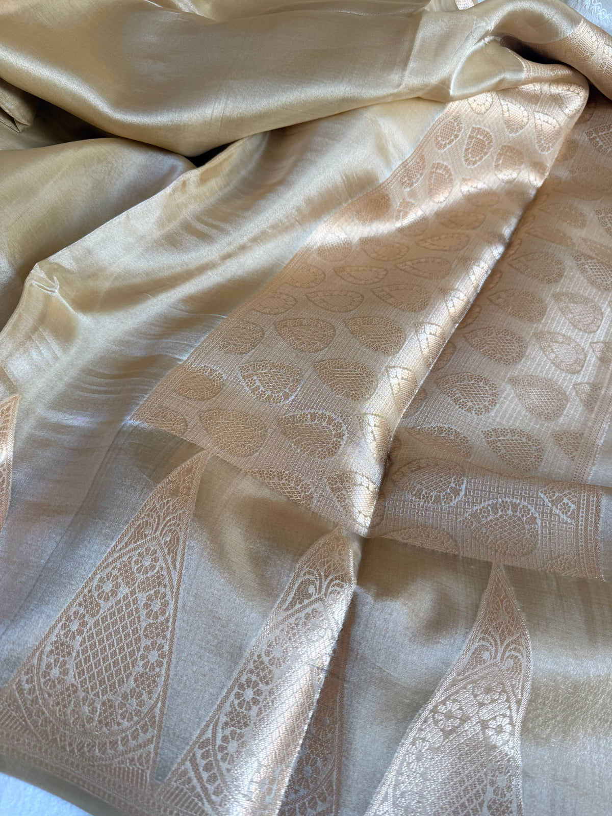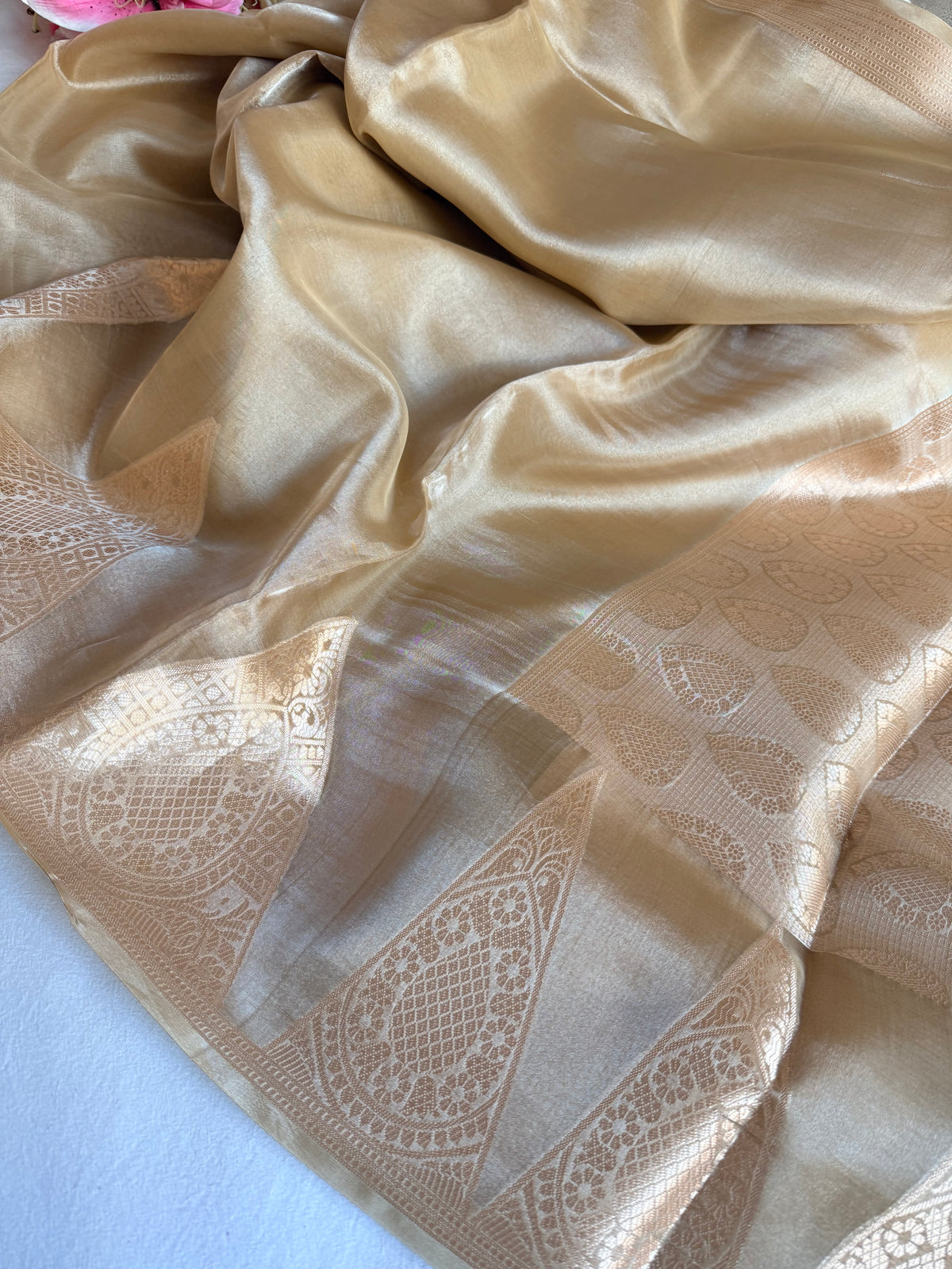 Below 10k - Temple border tissue silk dhup chao effect kadhwa saree