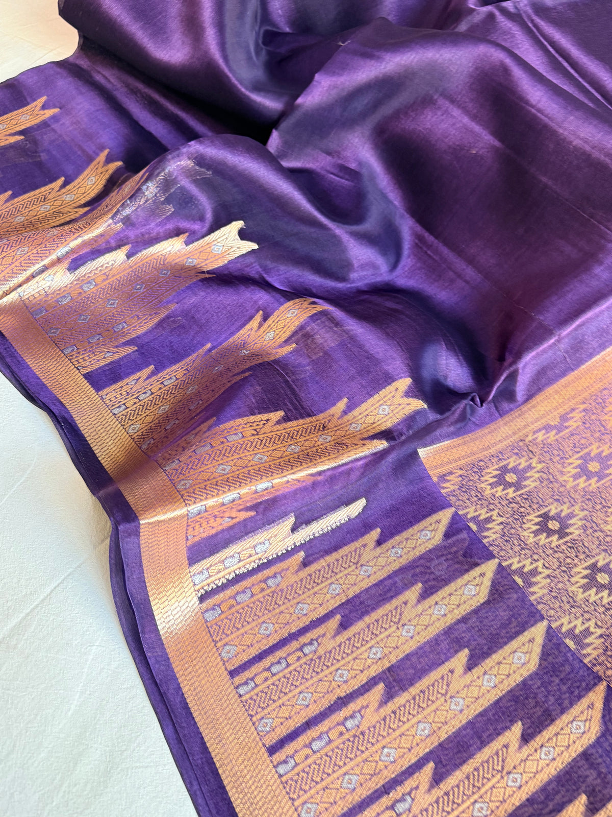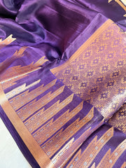 Below 10k - Temple border tissue silk dhup chao effect kadhwa saree