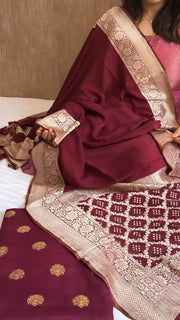 Details: The suit set includes kurta, duppata and bottom set Technique - kadhwa weaving Kurta Length - 2.5 meter Kurta...