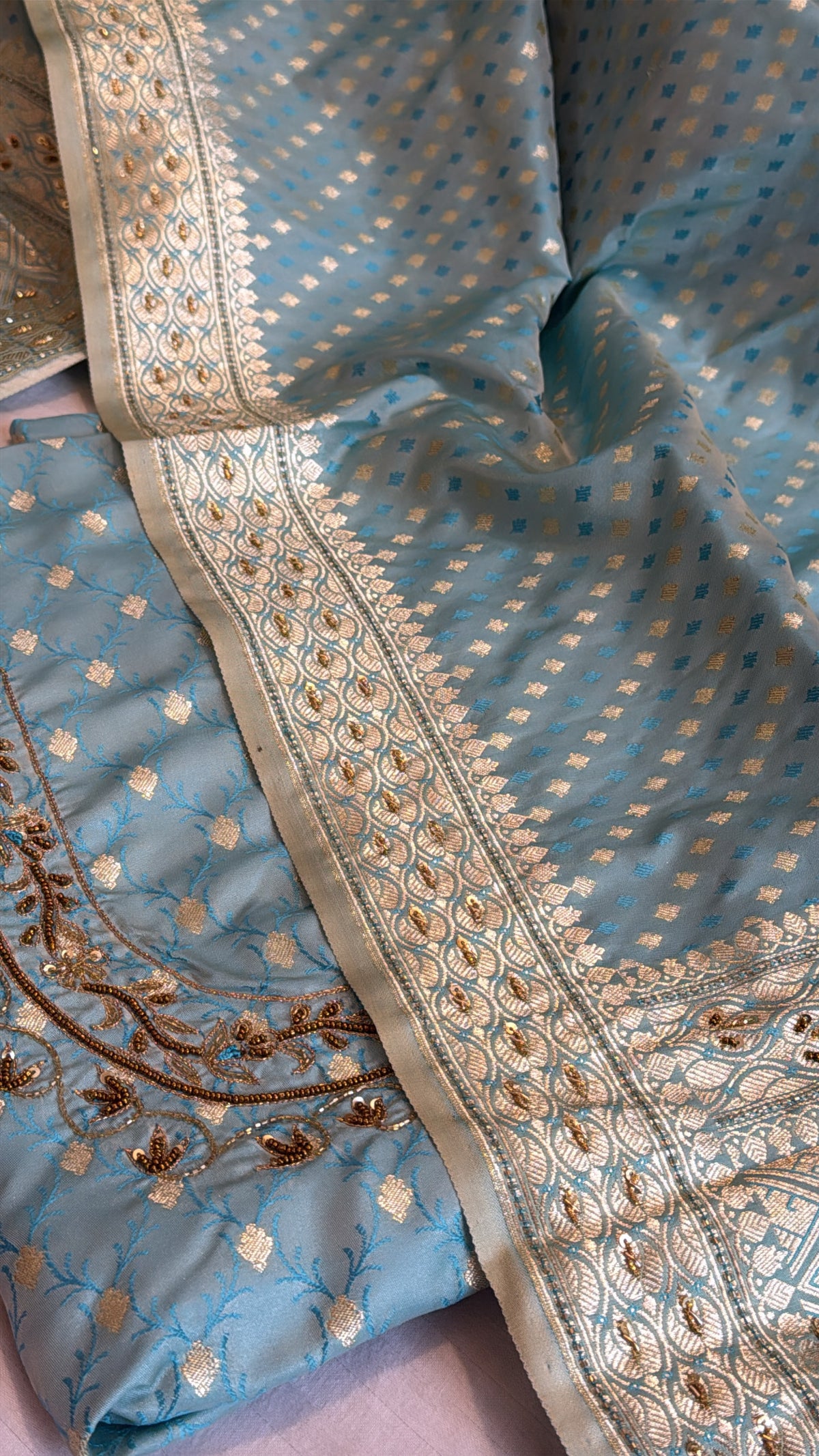 Details: The suit set includes kurta, duppata and bottom set Technique - kadhwa weaving Kurta Length - 2.5 meter Kurta...