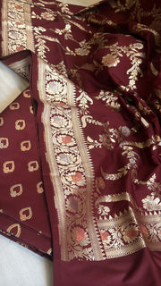 Deep maroonish red mashru satin silk meenakari suit set