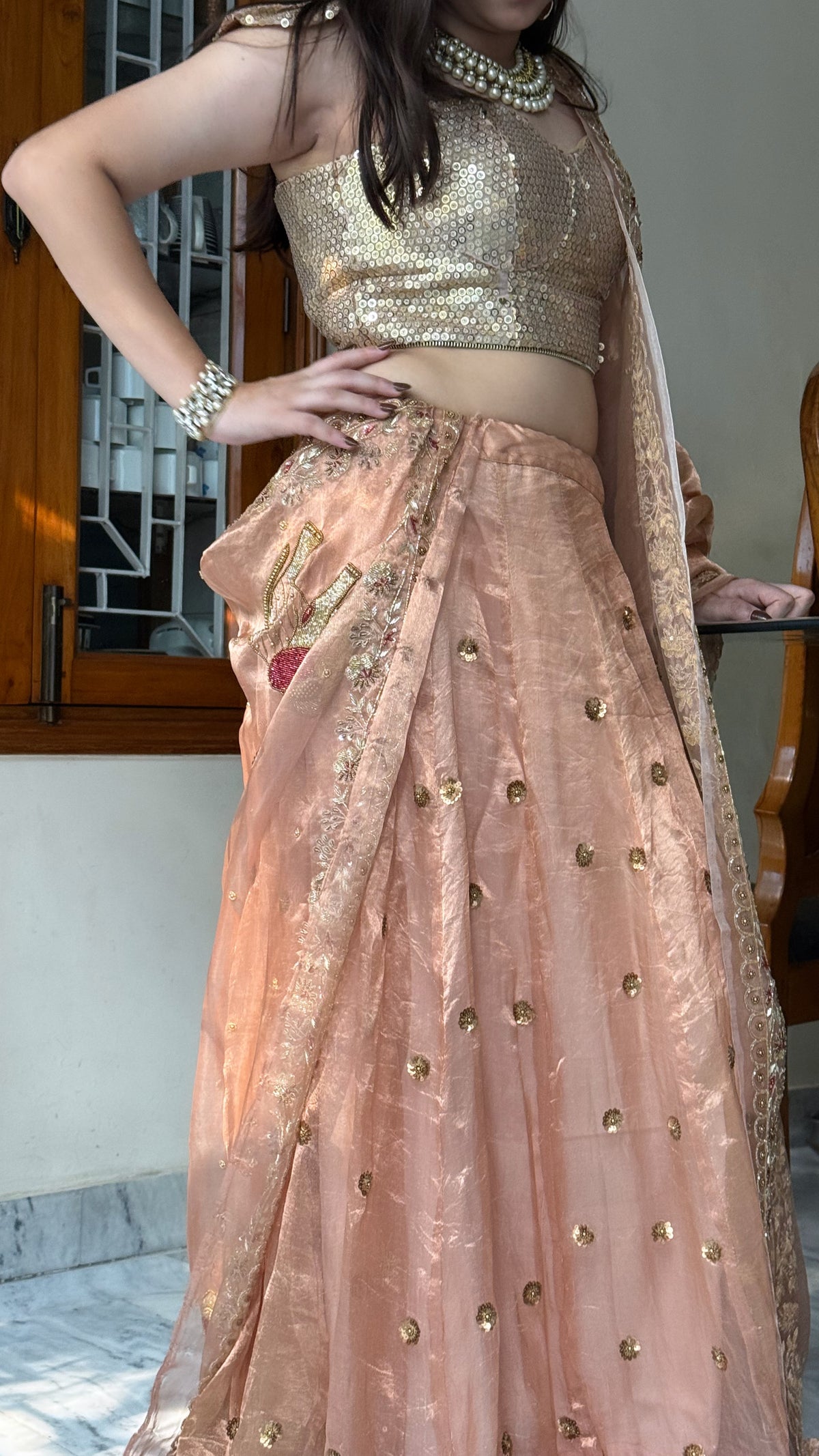 This is pure banarasi  tissue silk lehenga set including kali wala stitched lehenga with meenakari , duppata with gotapatti...