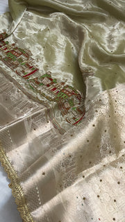 Gangaghat edit saree - Mint green tissue silk hand embroidered ghat inspired kadhwa saree