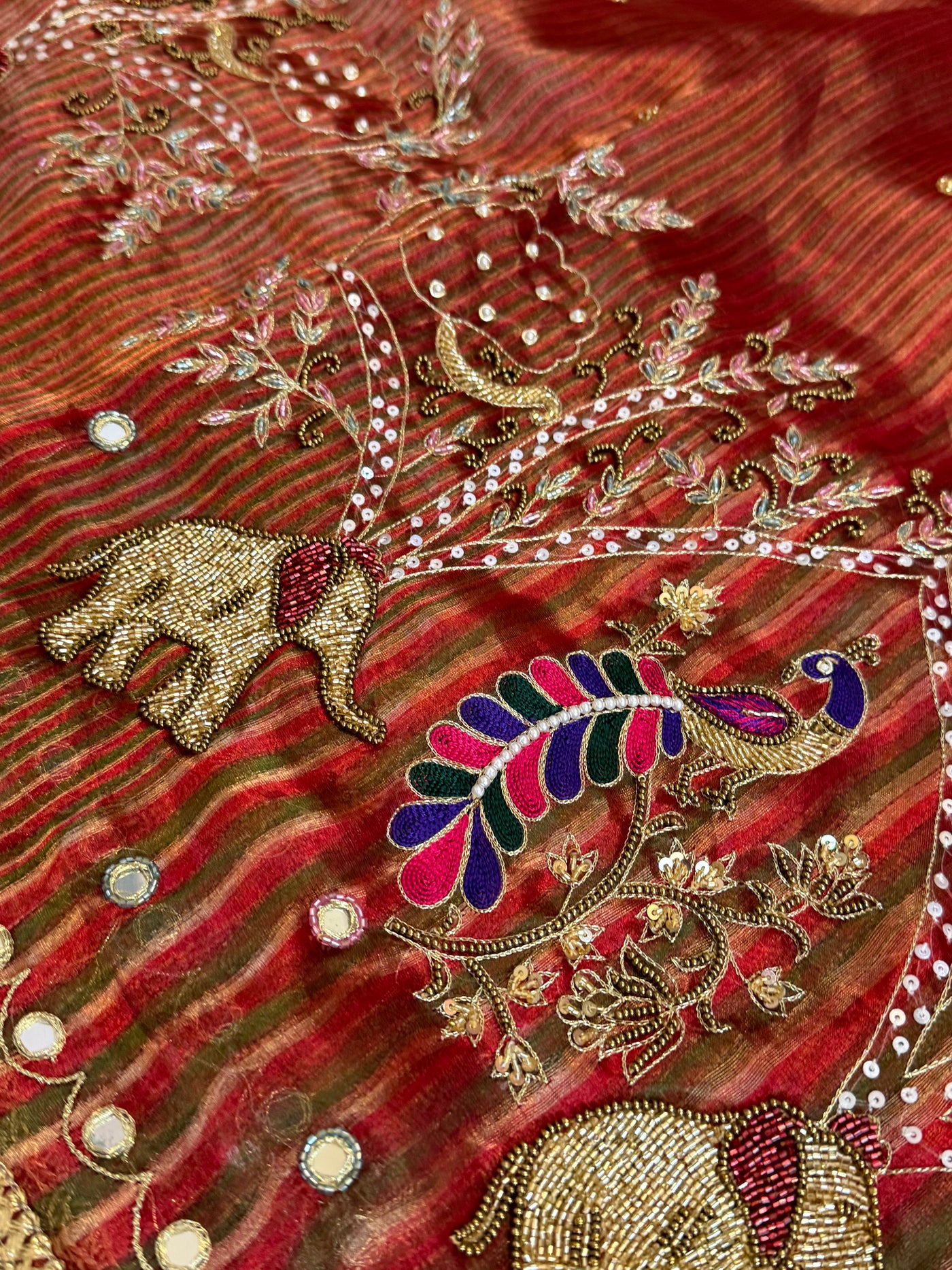 Hathi ghoda palki wali saree - Husn tissue silk hand embroidered saree