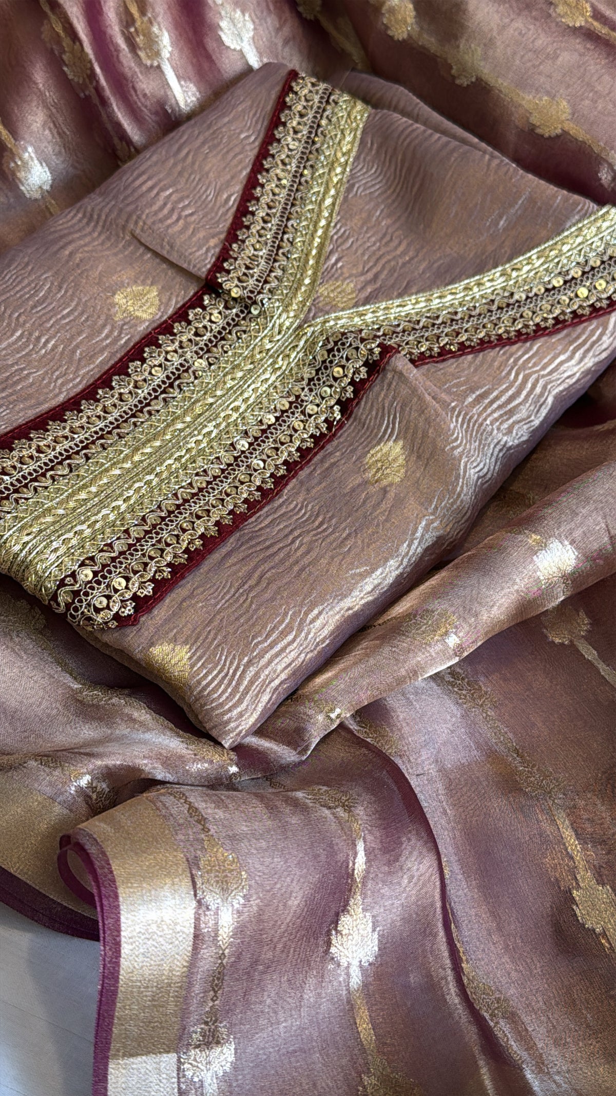 Details: The suit set includes kurta, duppata and bottom set Technique - kadhwa weaving Kurta Length - 2.5 meter Kurta...