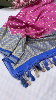 Moonga silk pink-blue contrast kadhwa duppata