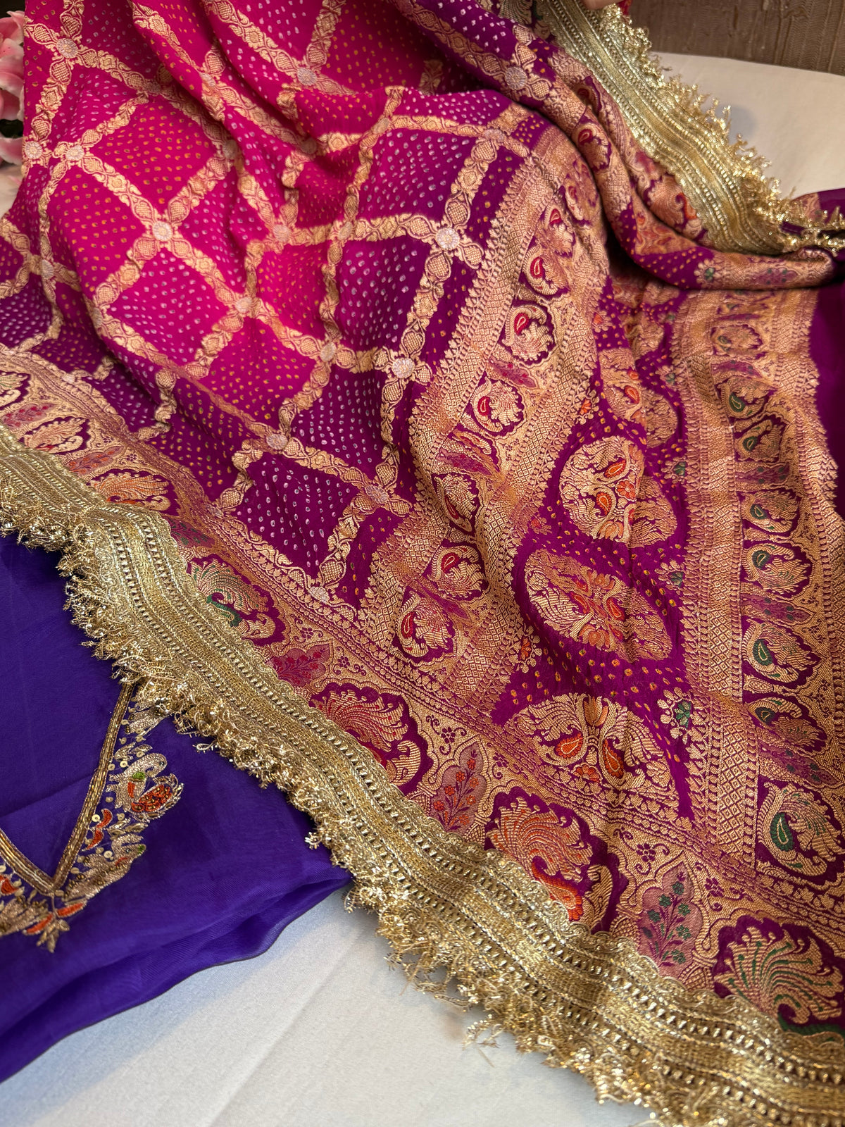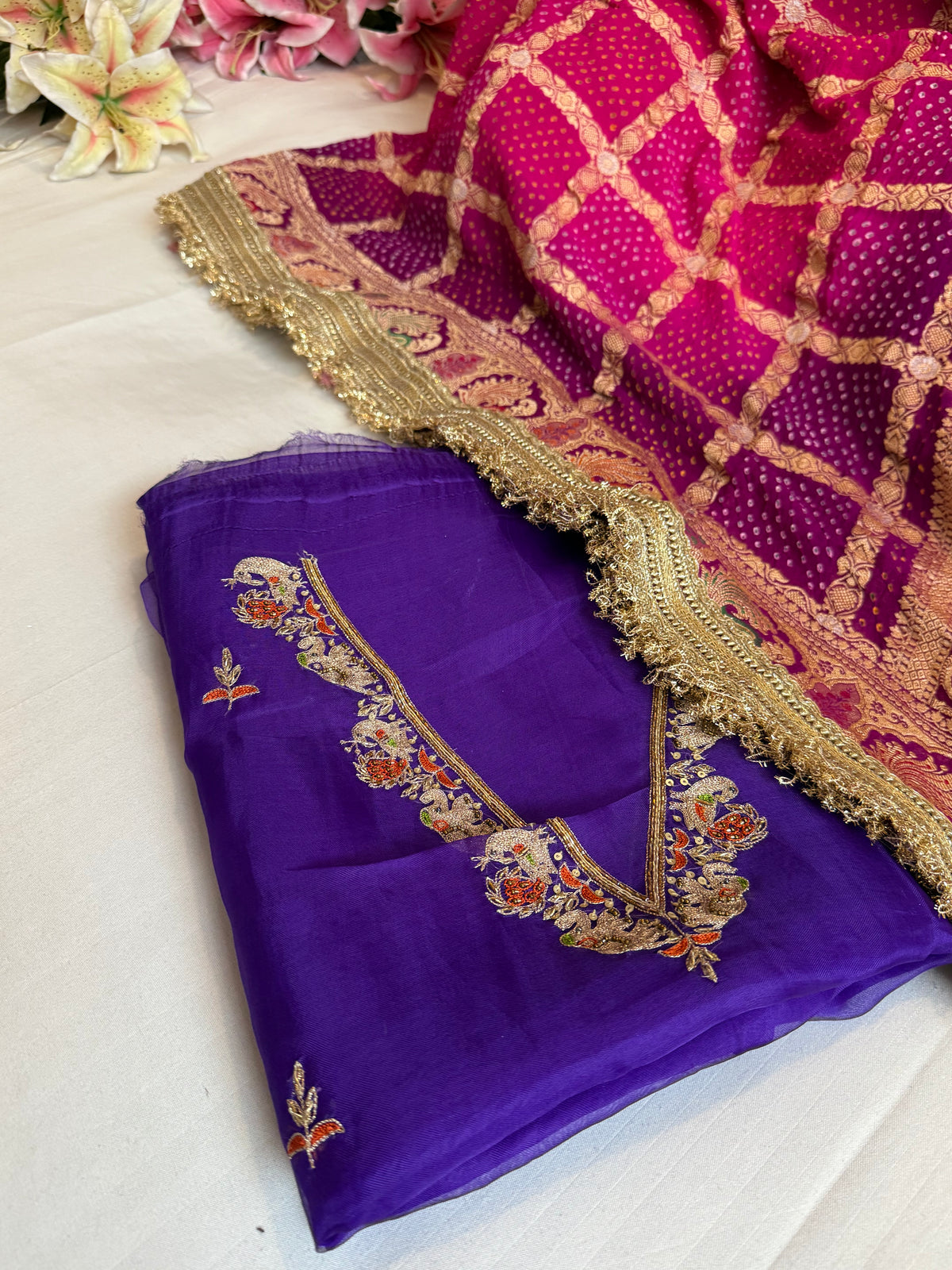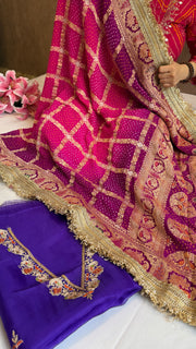 Rai bandhej gorgette kadhwa hand embroidered suit set