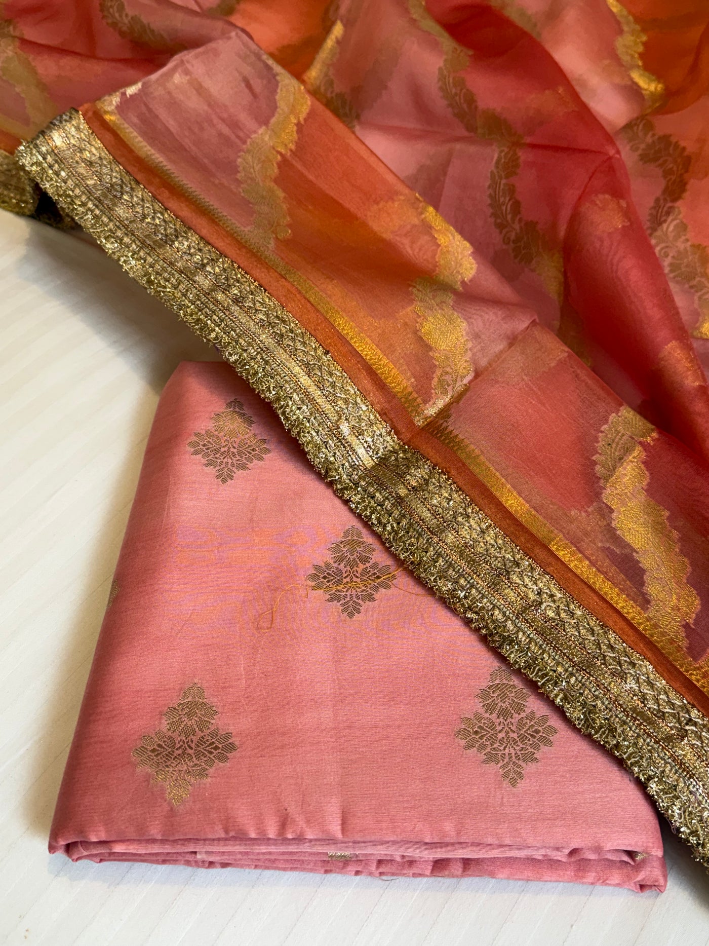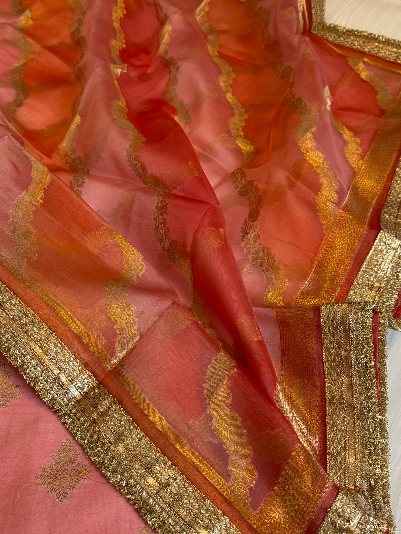 Shades of peach - Kora silk rangkaat kadhwa duppata paired with silk kurta