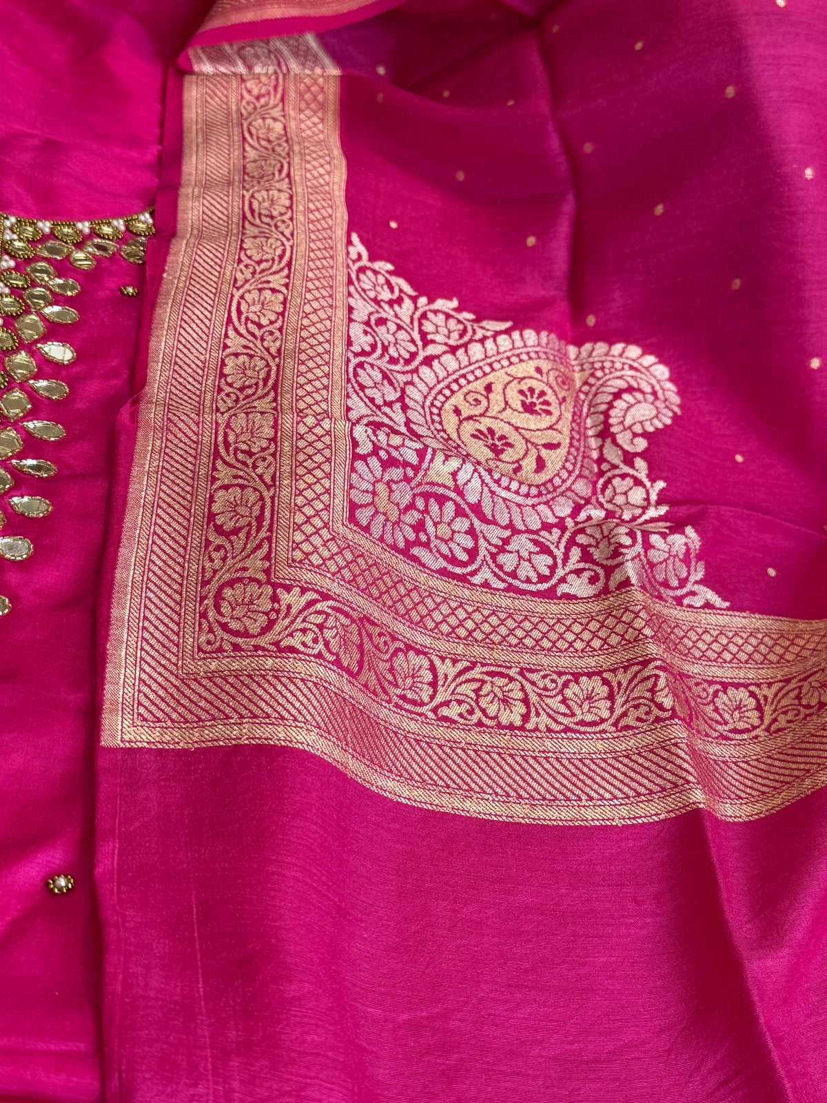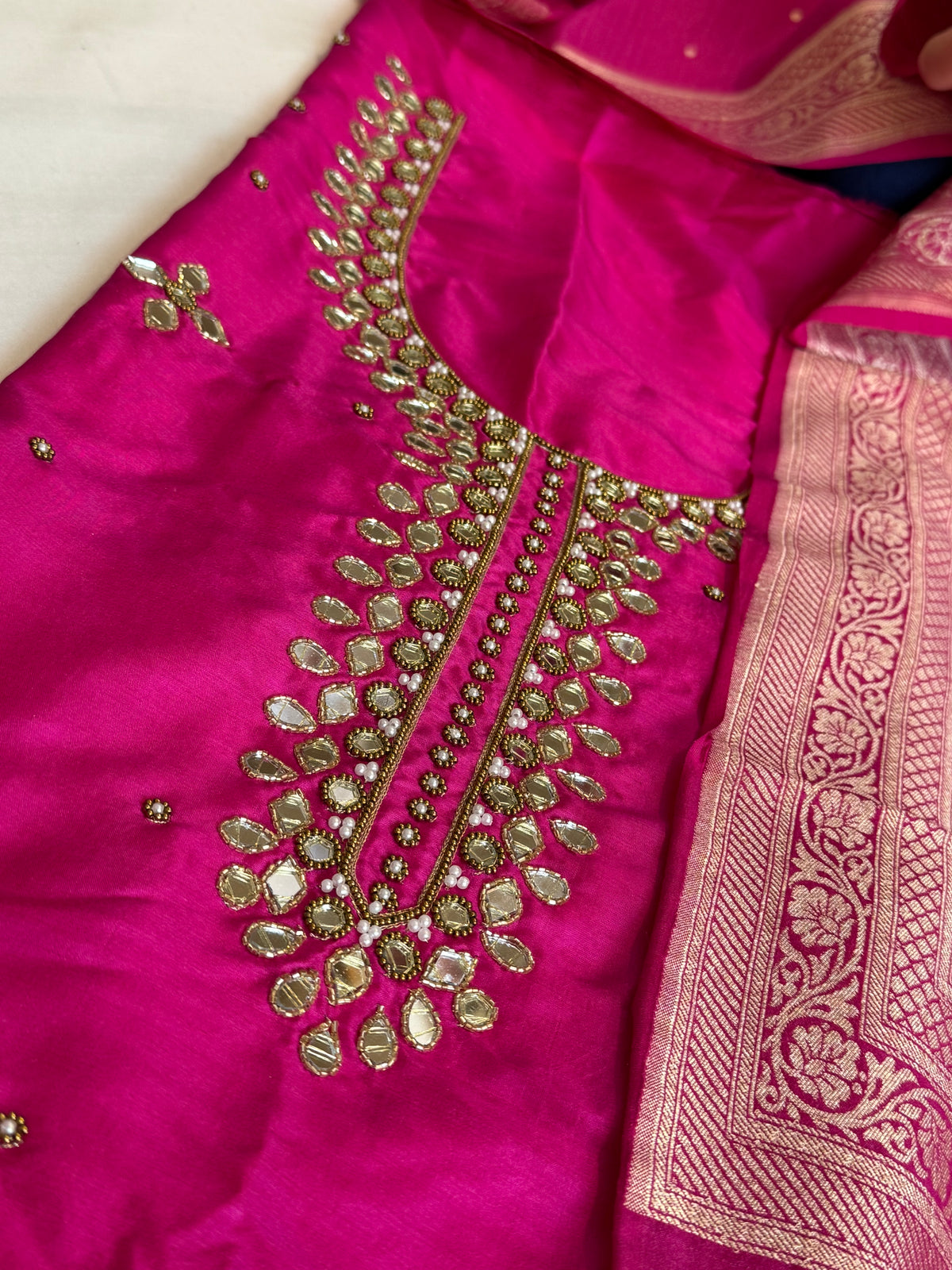 Sheesham rani pink mirror work katan silk kadhwa suit set