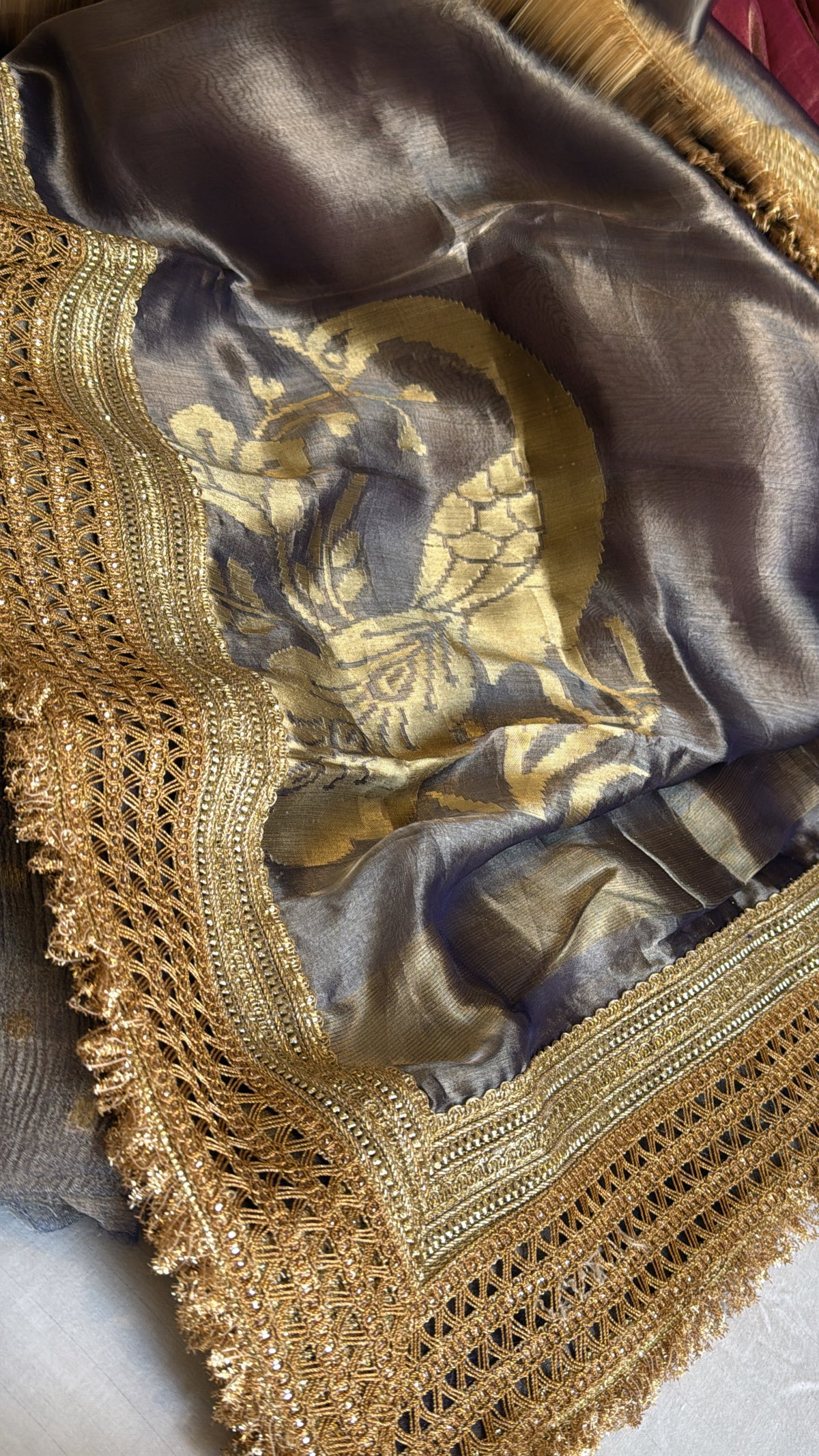 Steel grey crushed tissue silk kadhwa banarasi suit set