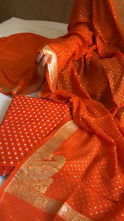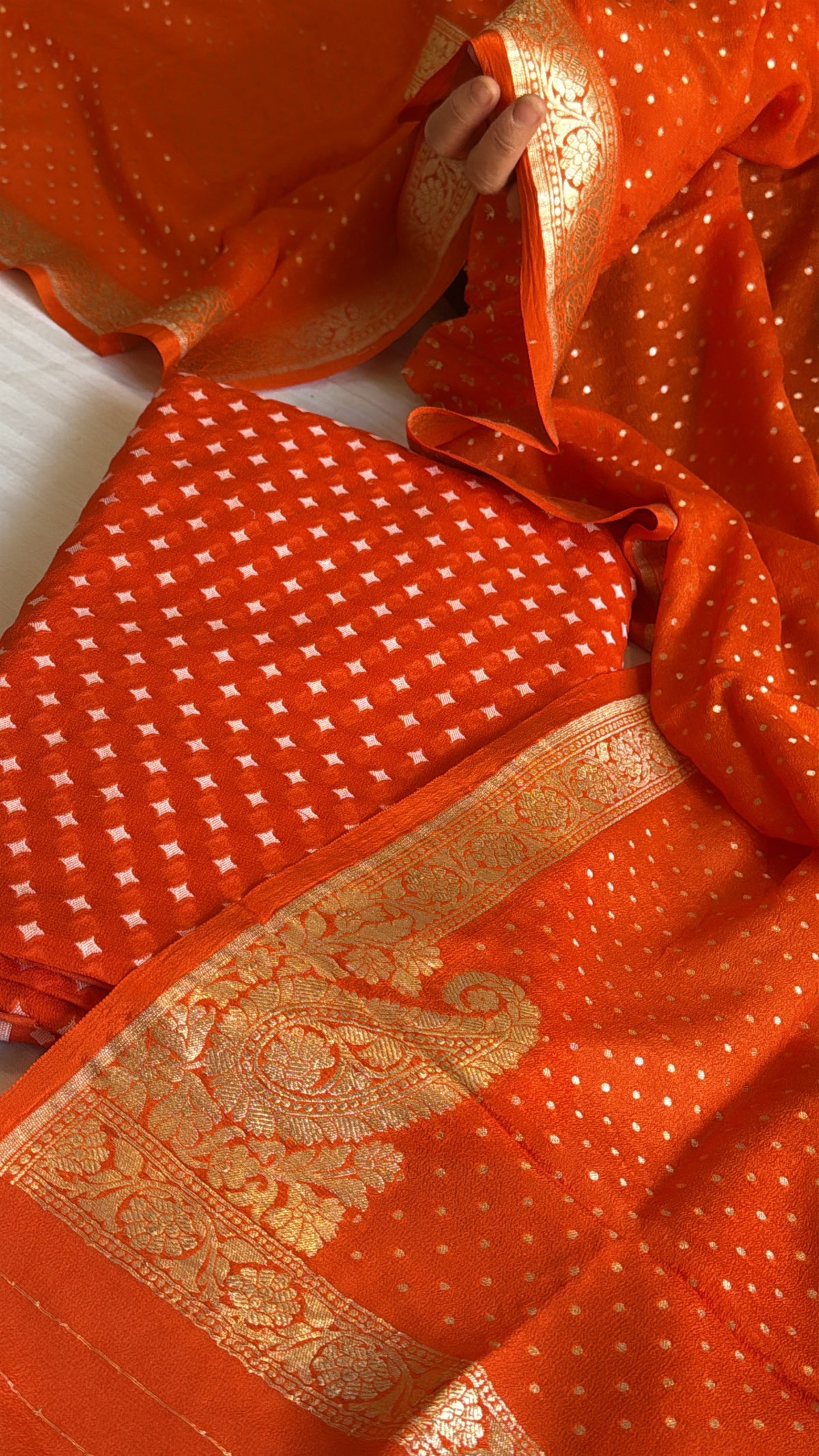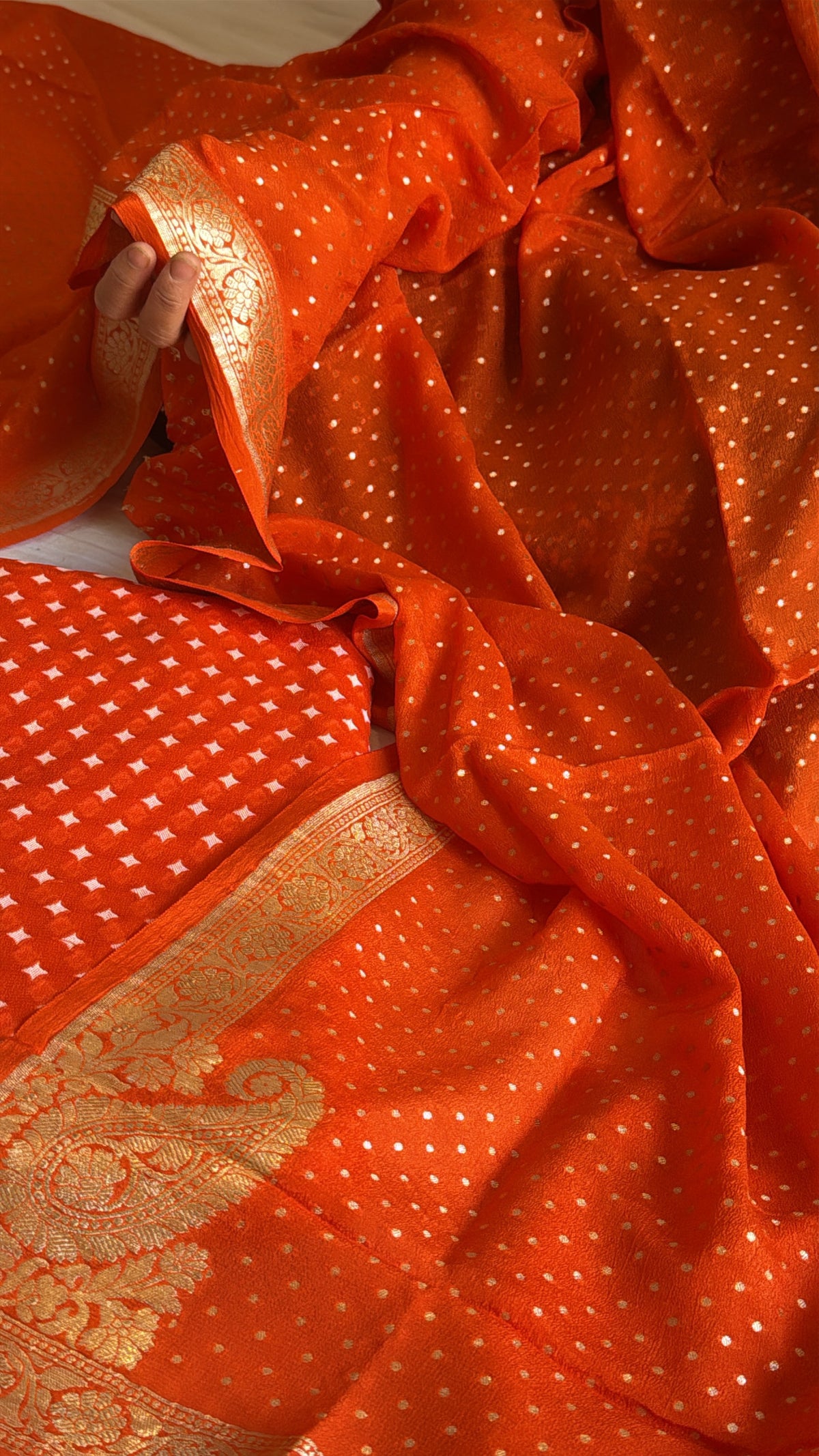 Vivah edit - Fanta orange chiffon gorgette chunri buti banarasi suit set