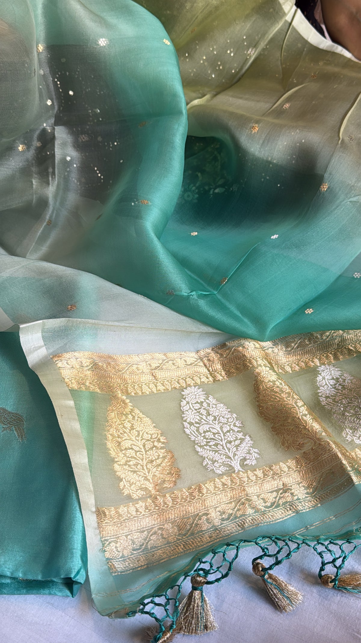 Vivah edit - Figure motif chiniya silk kurta paired shaded kora silk duppata set