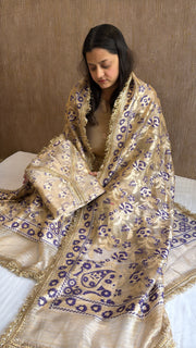 Vivah edit - Golden tissue silk jamdani meenakari weaving hand embroidered kadhwa suit set