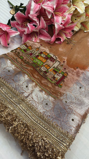 Wedding edit - Husn Chuski orange banarasi ghat motif tissue silk hand embroidered saree